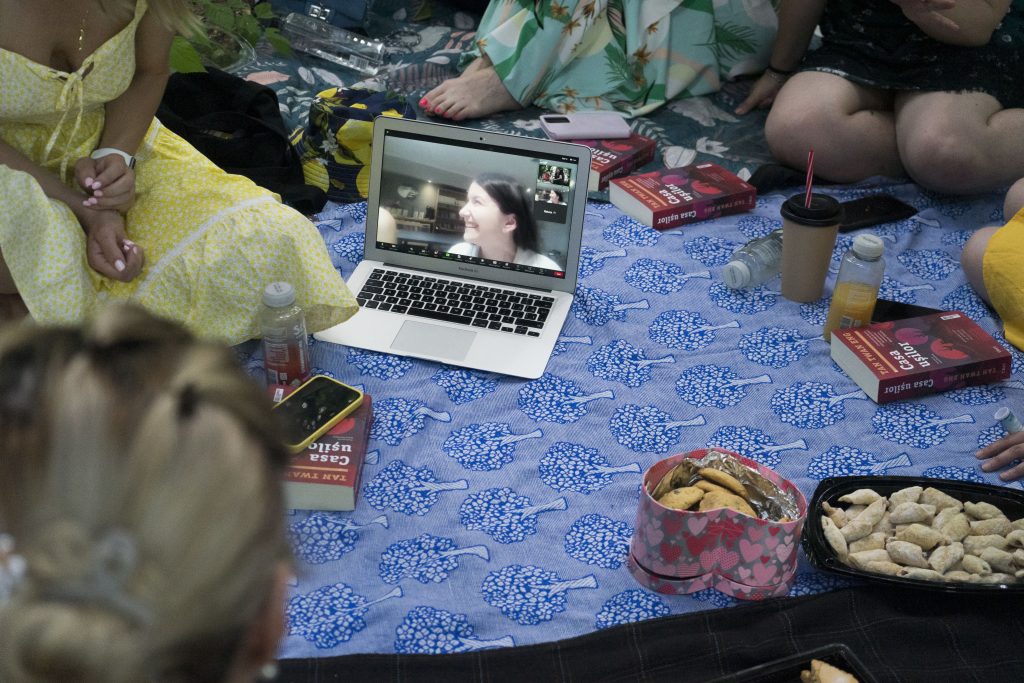 Pentru cei care nu au putut ajunge fizic la Grădina Botanică, Zoom-ul a oferit o alternativă perfectă prin intermediul Bibliotecii Colorate din Tomis Mall. Această platformă a permis participanților să se conecteze în timp real, să împărtășească impresii și să exploreze împreună aspecte sensibile și profunde ale poveștii prezentate în „Casa ușilor”. De la analiza narativă la temele LGBTQ+, discuțiile au fost caracterizate de deschidere și empatie.
