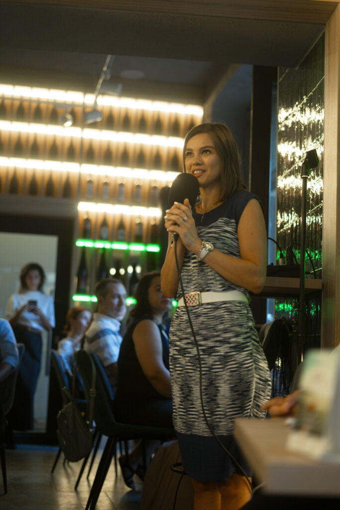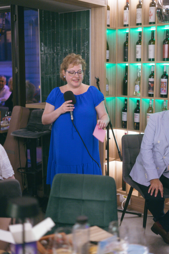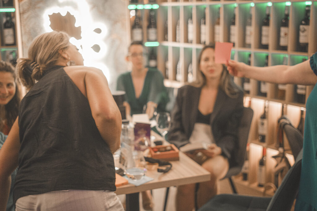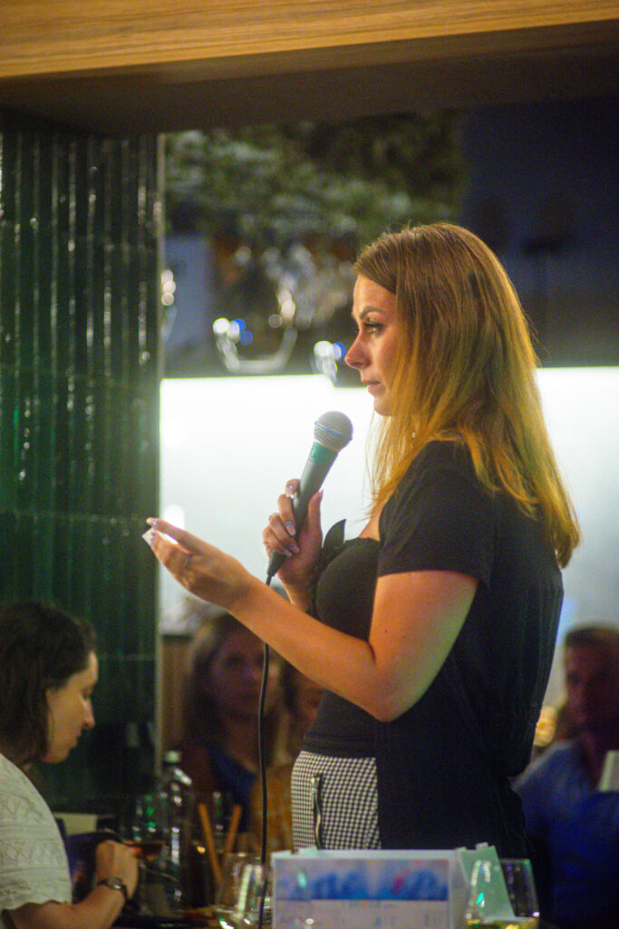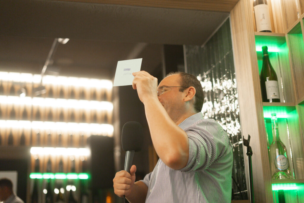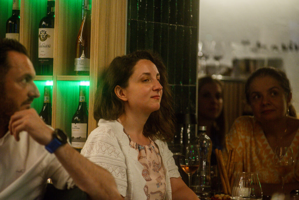 Prima ediție Books and Wine a avut loc pe 11 iulie, unde invitat a fost scriitorul Radu Paraschivescu, a cărui prezență ne place ORICÂND și sperăm să-l revedem și în cadrul altor evenimente, iar Maria Roxana Șerban ne-a încântat cu vocea sa. 30 de cititori ne-am adunat la Uva Wine, un loc ce pune la dispoziție peste 450 de sortimente de vin și platouri cu brânzeturi alese, iar jocul “Ghicește personajul!”, care a început în taberele de lectură pentru adulți, a fost foarte distractiv și ne-a destins pe parcursul serii.