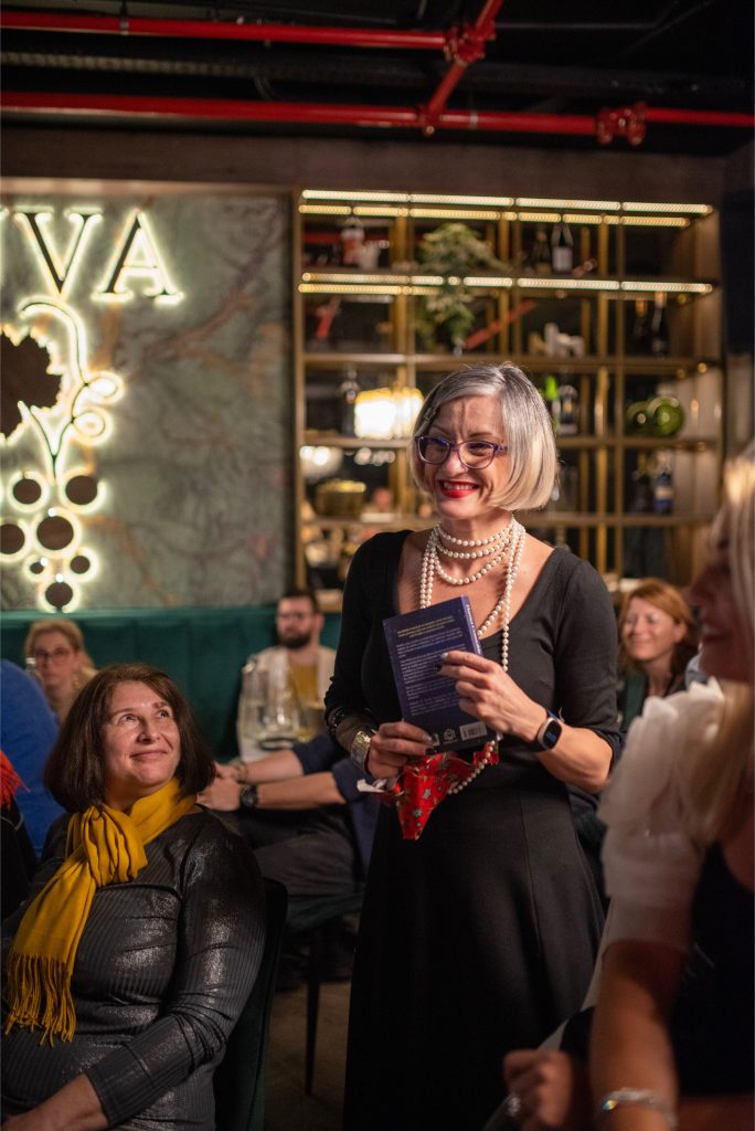 Ediția a IX-a a evenimentului Books and Wine a adunat, la Uva Wine & Gastro Bar, pasionați de literatură, jurnalism cultural și degustări de vinuri într-o atmosferă inegalabilă. Gazda serii a fost Carmen Târnoveanu, binecunoscuta prezentatoare a emisiunii „Dăruiește Românie” de la TVR3, care a încântat publicul cu eleganța și profesionalismul său.