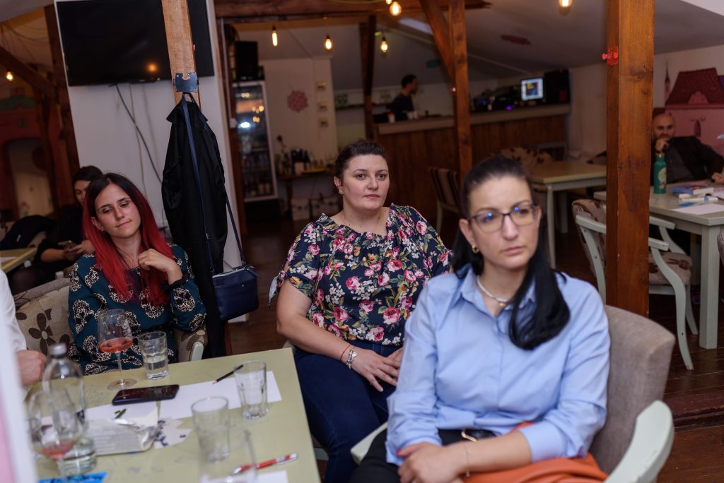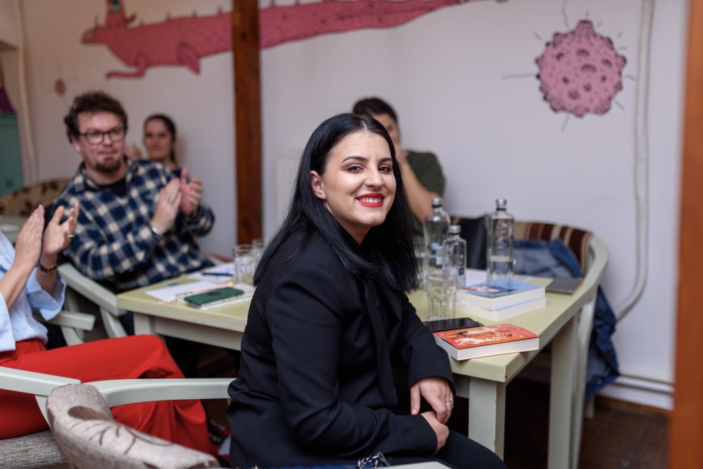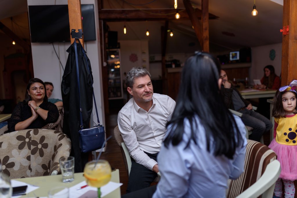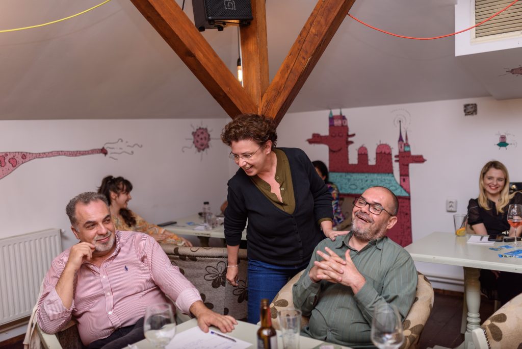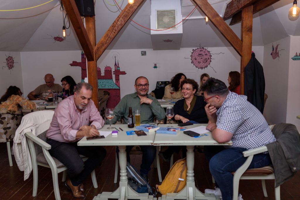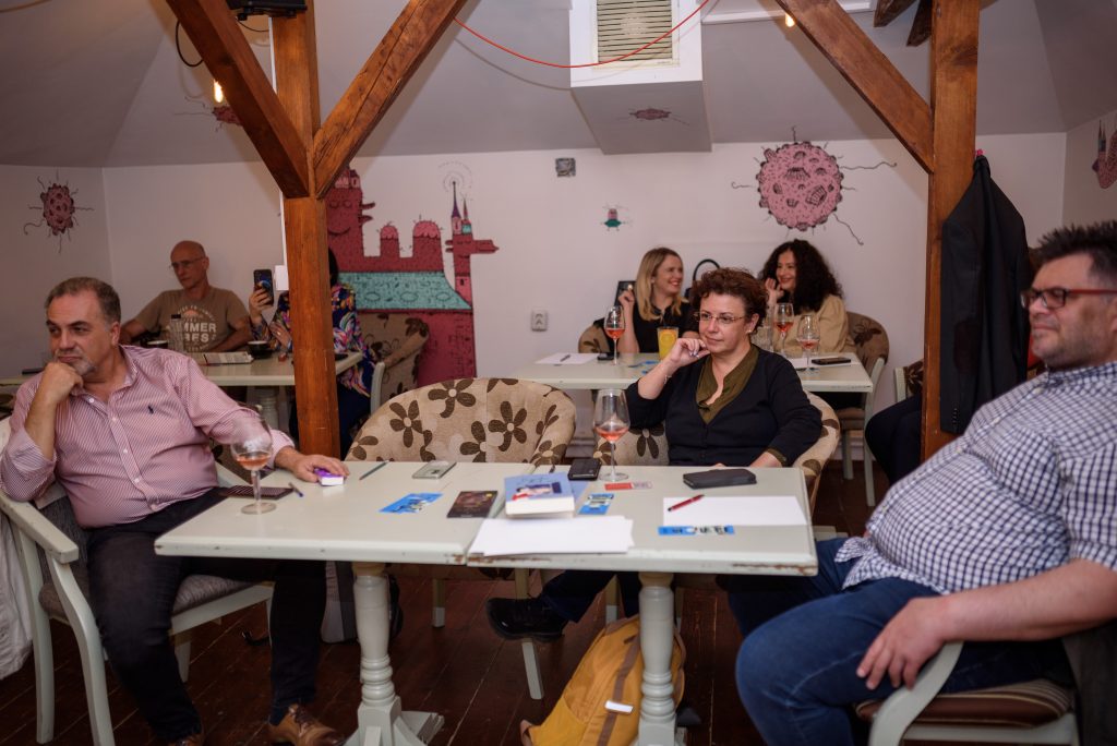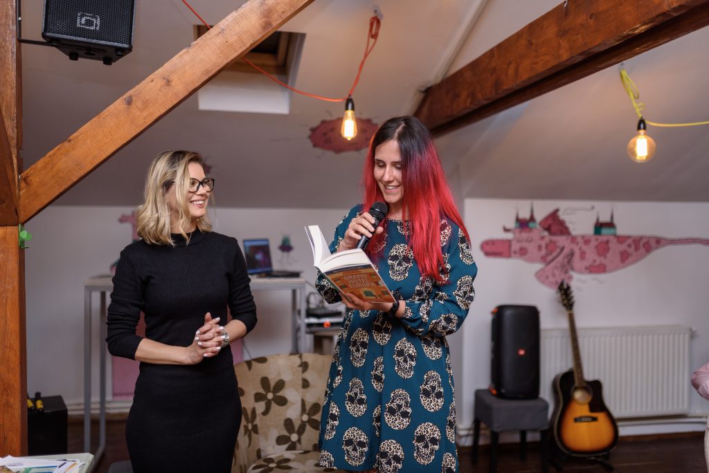 Pe lângă prezentările fascinante, muzica live a adus o notă de bucurie și entuziasm în cadrul Books and Wine. A fost pentru prima dată când am avut la eveniment cel mai tânăr membru al comunității iCarte, iParte – Alma Lorena, în vârstă de 13 ani. Aceasta a cântat la voce și chitară, fiind acompaniată de Vlad Ifrim la cahon, component al trupei Cafea Amară.