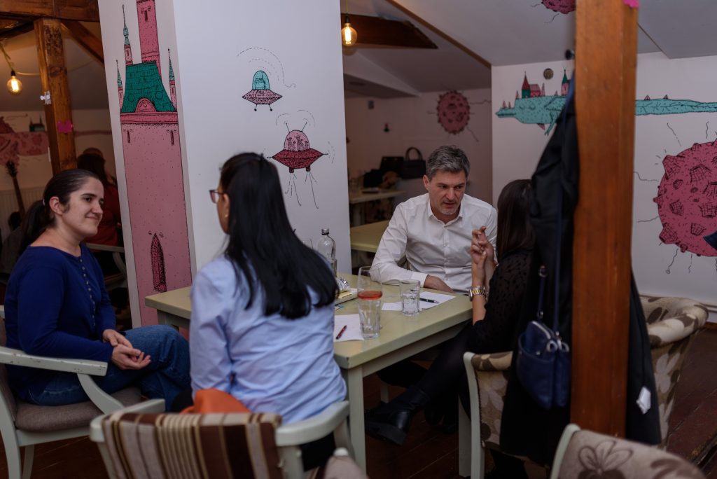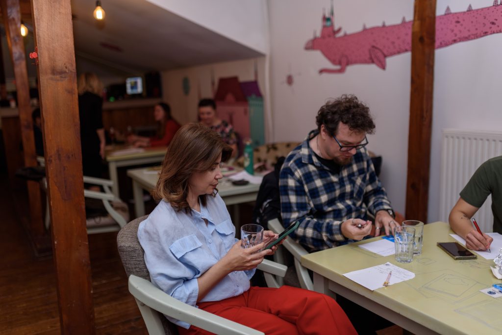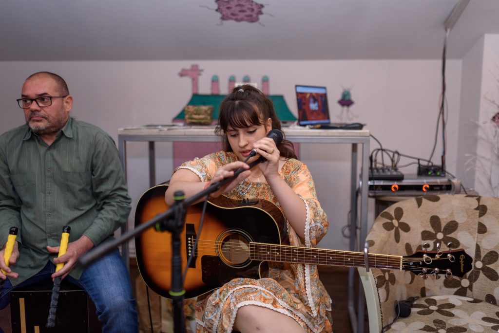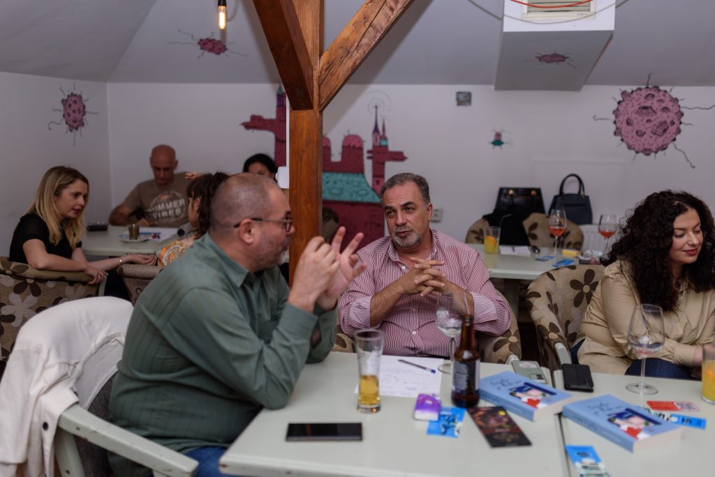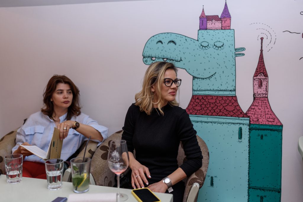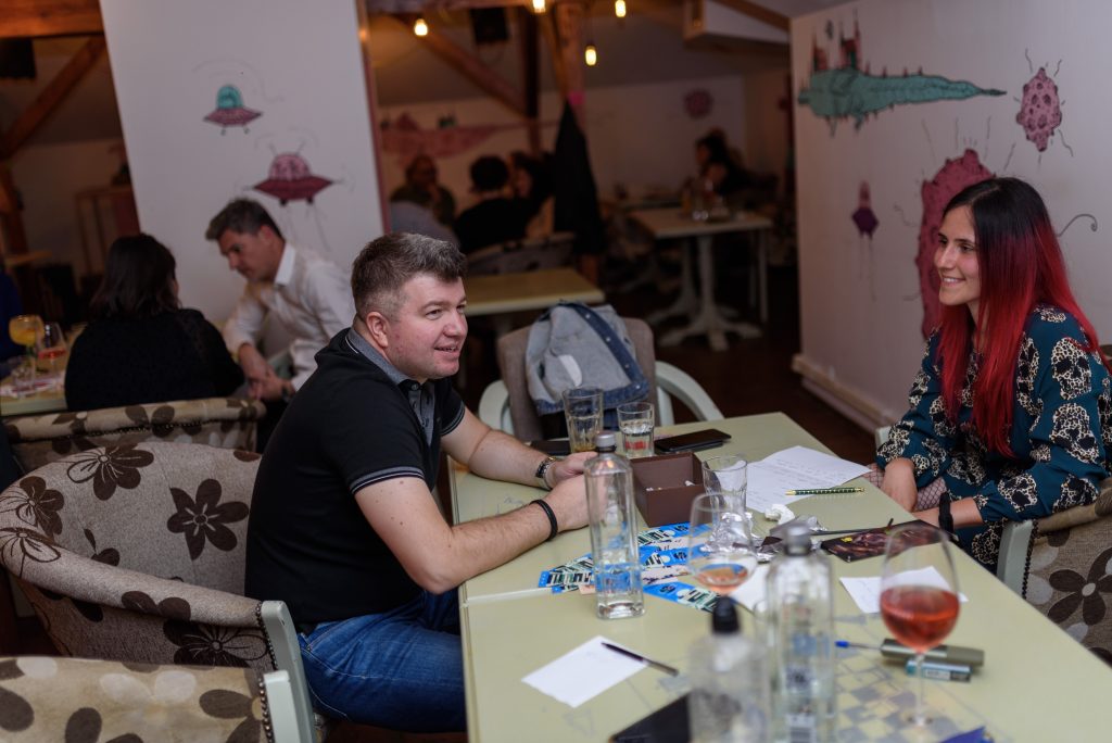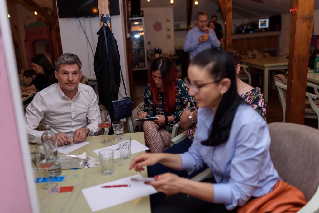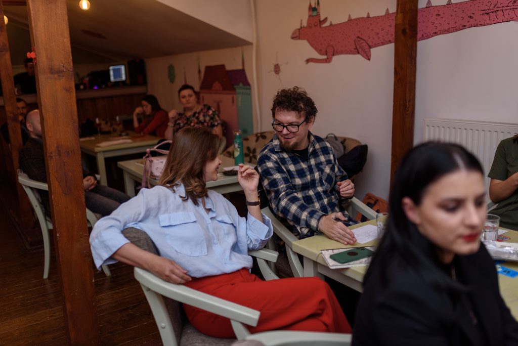 Pe lângă prezentările fascinante, muzica live a adus o notă de bucurie și entuziasm în cadrul Books and Wine. A fost pentru prima dată când am avut la eveniment cel mai tânăr membru al comunității iCarte, iParte – Alma Lorena, în vârstă de 13 ani. Aceasta a cântat la voce și chitară, fiind acompaniată de Vlad Ifrim la cahon, component al trupei Cafea Amară.