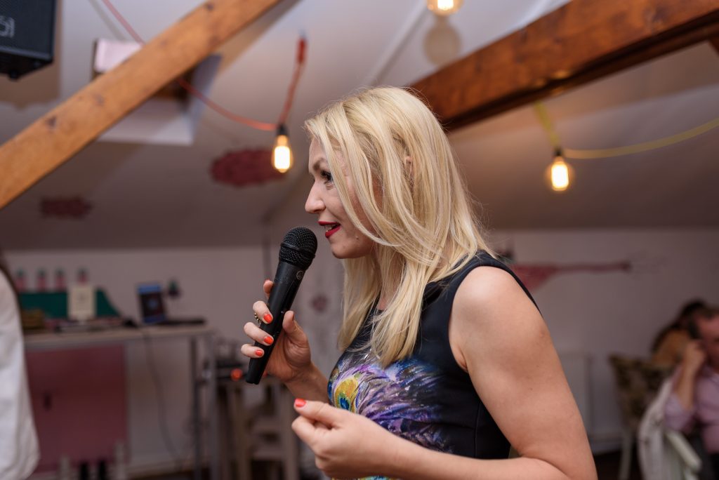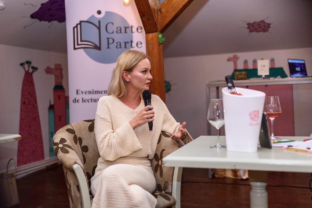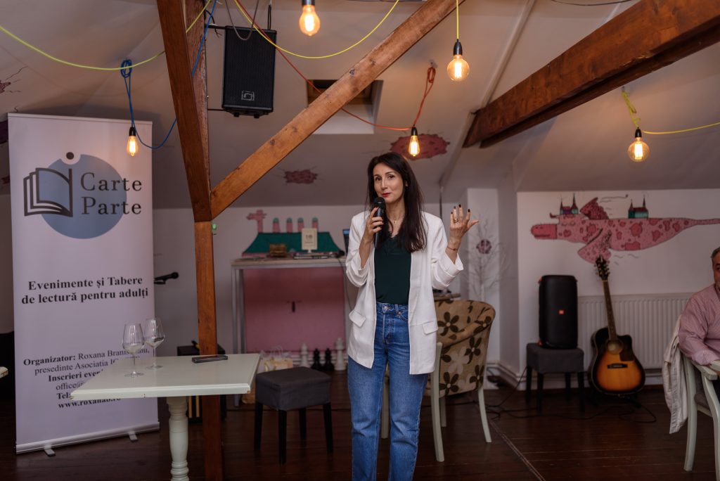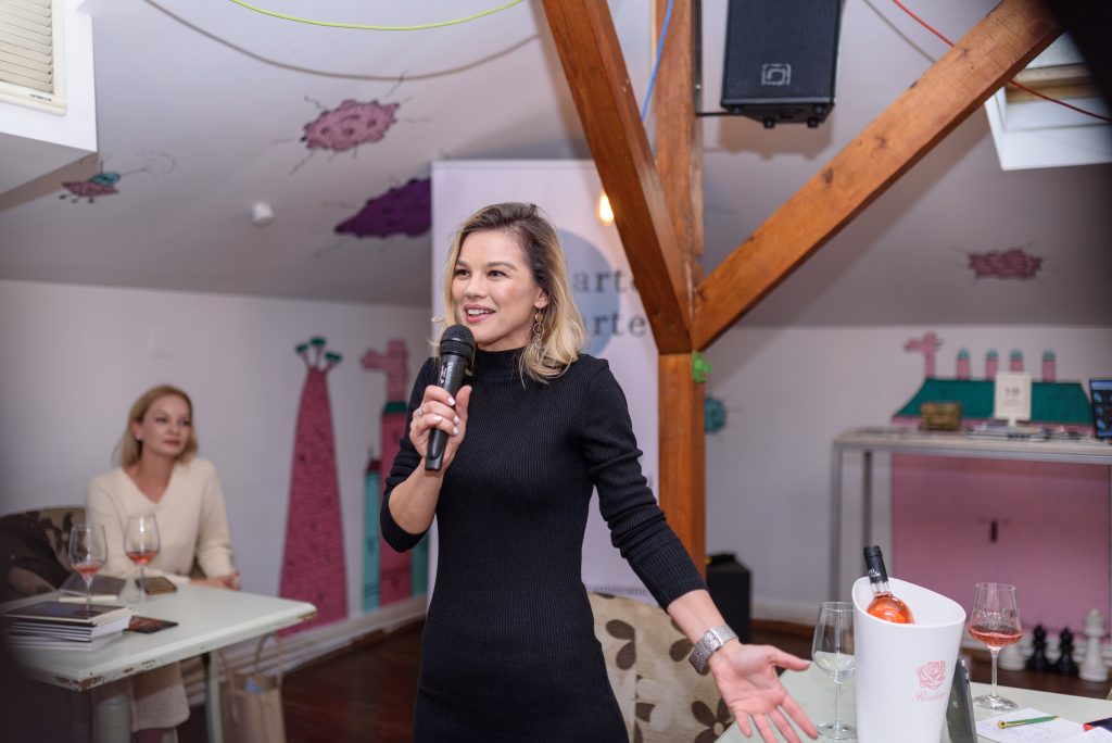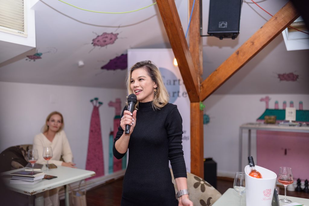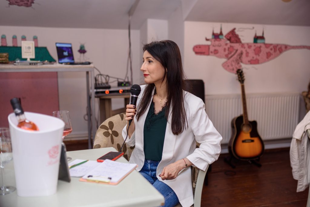 Prima persoană pe care o vedem pe scena Books and Wine este și cea care prezintă evenimentul. Carmen Târnoveanu, cu o experiență în radio si tv de aproape 20 de ani, ține sala atentă și răbdătoare în a livra ce urmează.