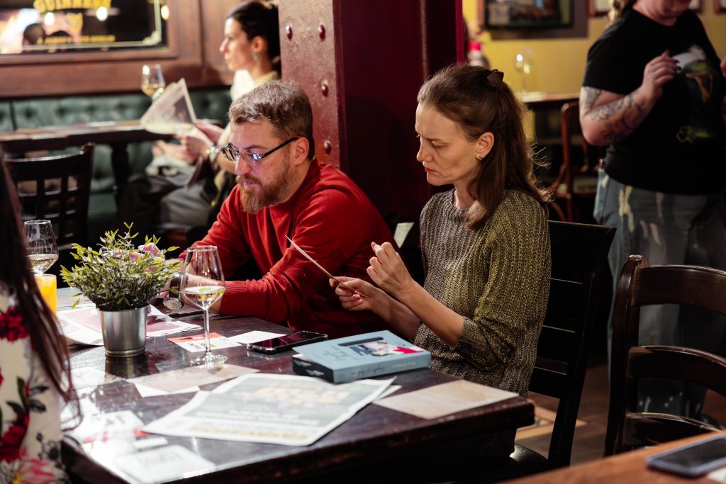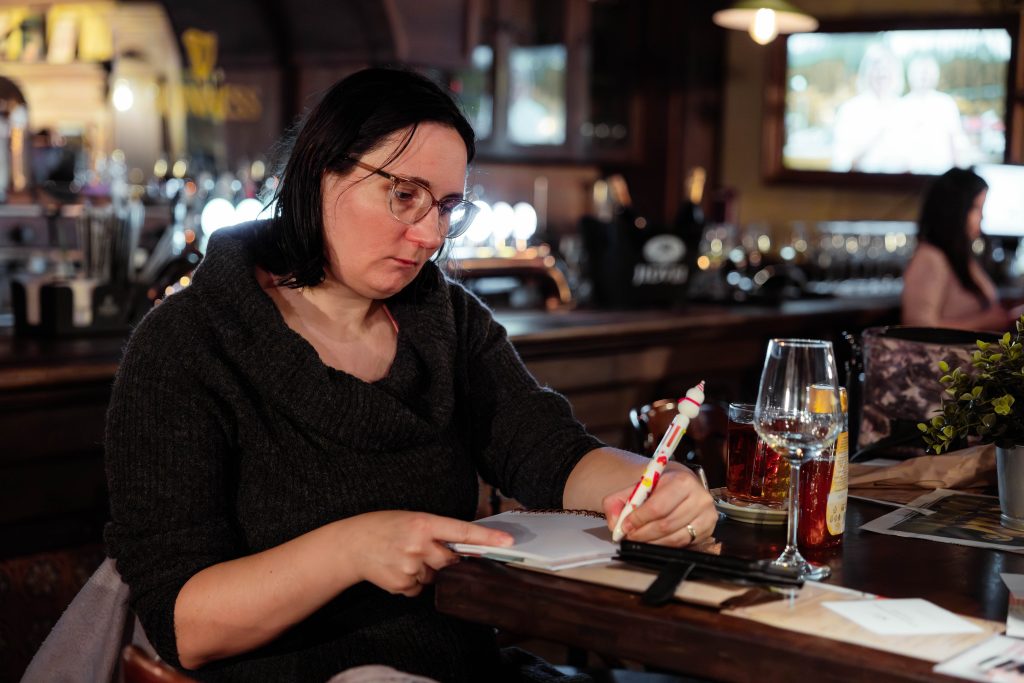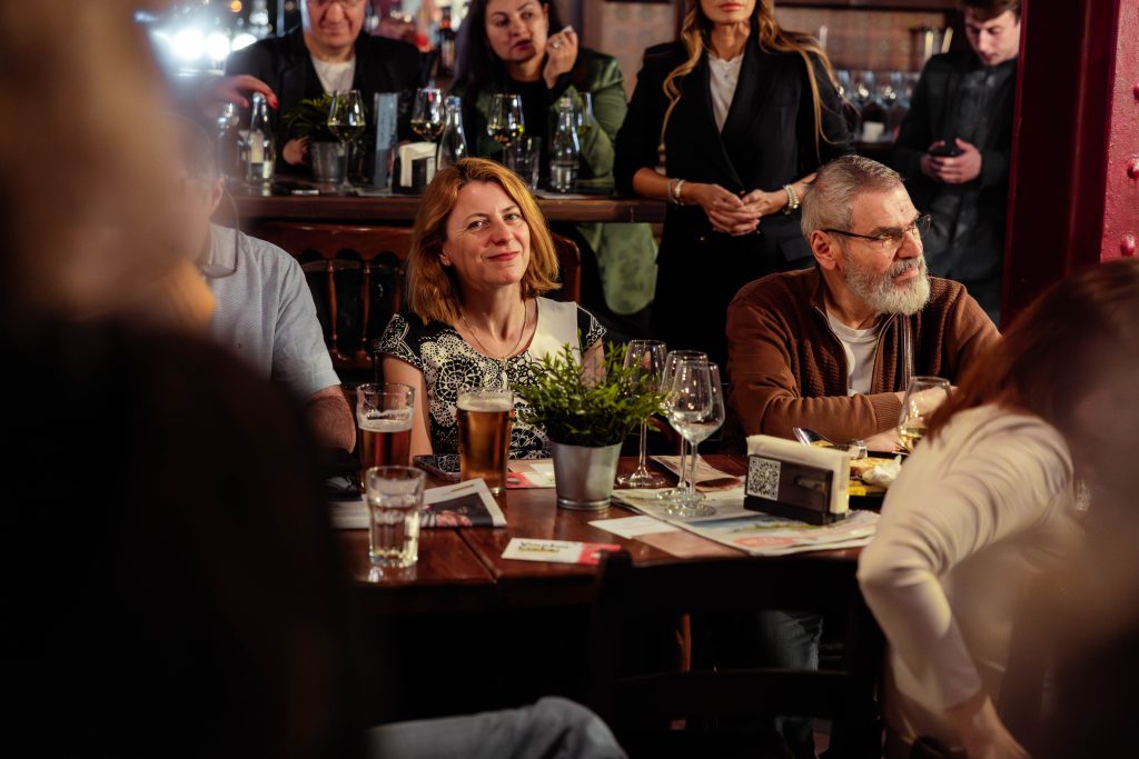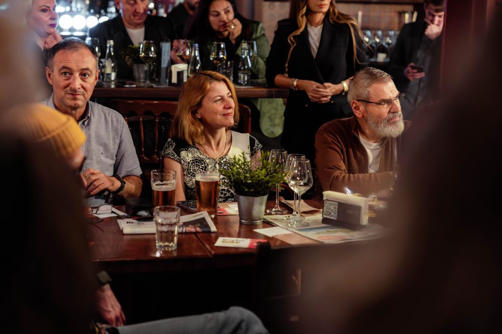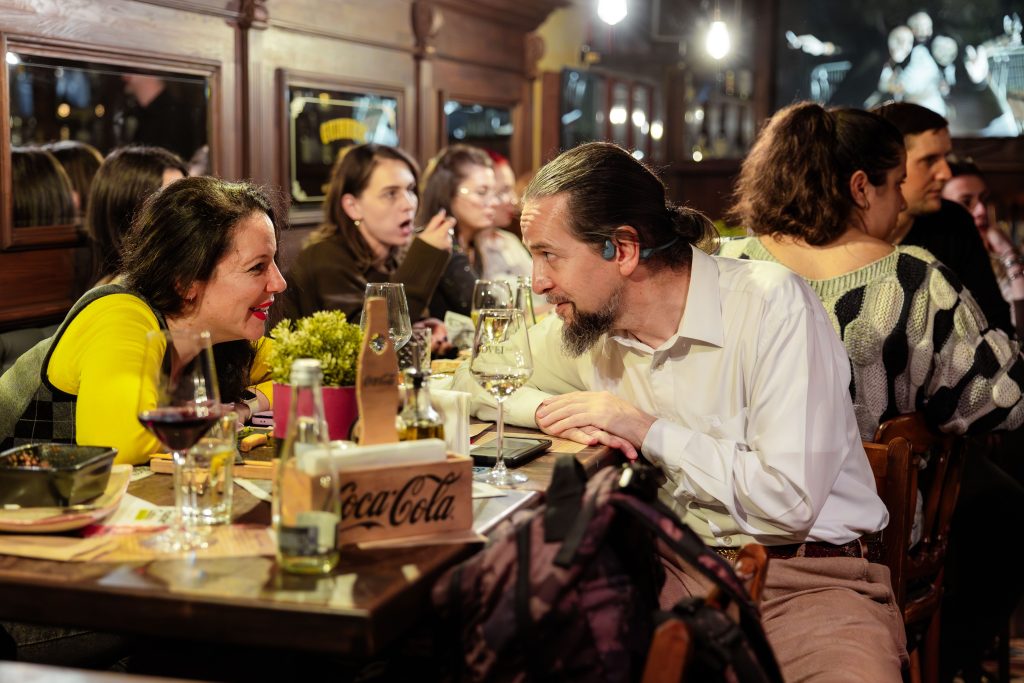 Ne-am întâlnit într-o seară ploioasă de joi, la St. Patrick Irish Pub, într-o atmosferă caldă și prietenoasă, iar seara a început firesc, cu multă socializare. Oameni care nu se cunoșteau au început să vorbească despre cărți, autori, idei, la atelierul literar, ca și cum s-ar fi întâlnit într-un living comun. Nu a fost nimic pe grabă, nu a existat zgomot inutil, au fost doar conversații care au curs natural.