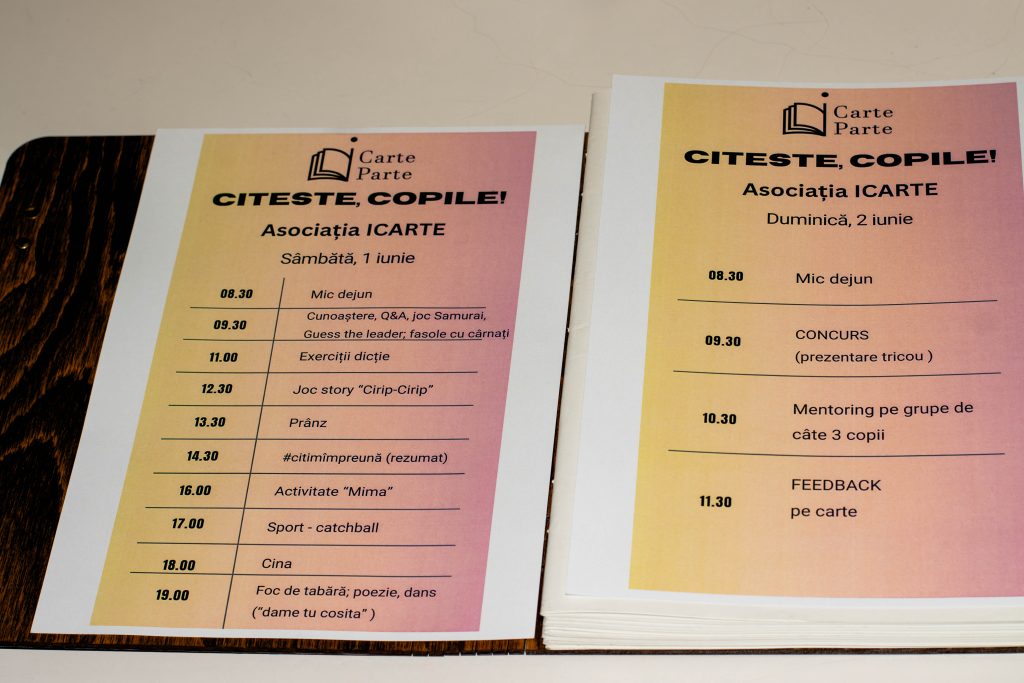 Mulțumim fiecărei persoane implicate, de la Sloop (smoothie), Heidi (ciocolată), I Wood Be (carte feedback), cărți (editura Ars Libri), Ruvix (tricouri), Portretul unui Cititor (grafică afiș), One Branding Agency (roll up). Nu în ultimul rând, partenerilor de la Fundația Alba Eglesia, care au sprijinit cu mese, cazare și transport acest proiect. Desigur, comunității iCarte, iParte care a completat formularul 230, fără de care nu am fi putut achiziționa alte materiale necesare (de exemplu, tricourile, care au fost cu un discount din partea Ruvix).