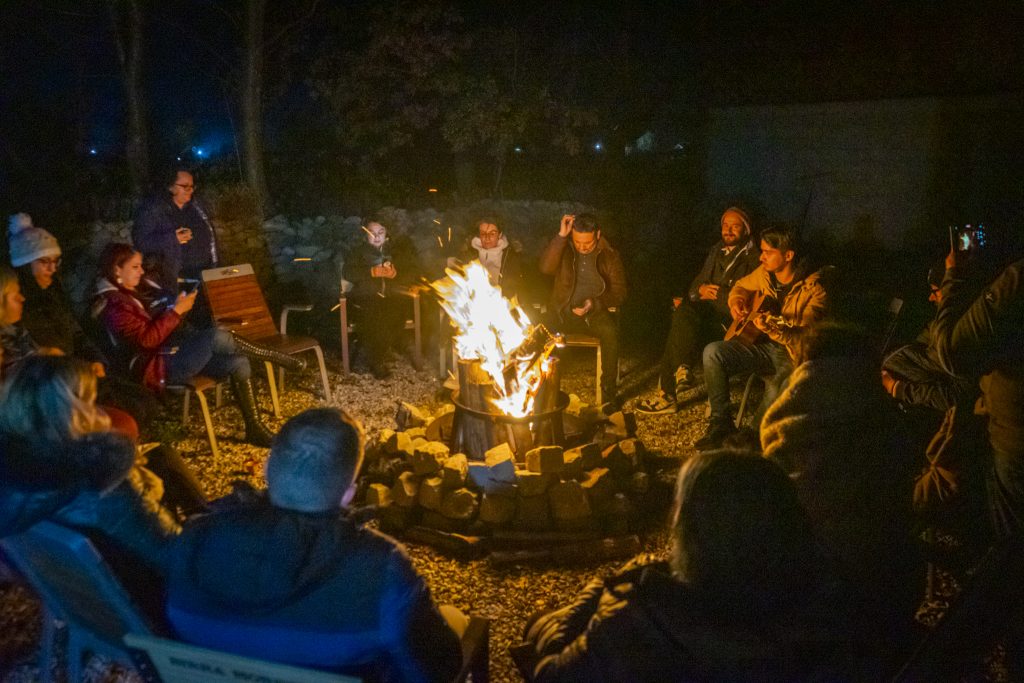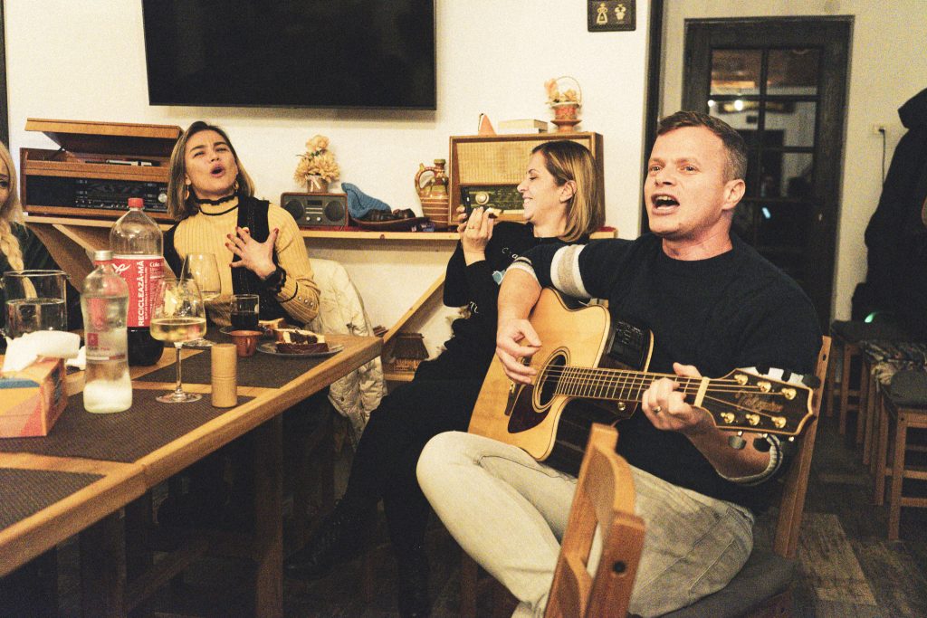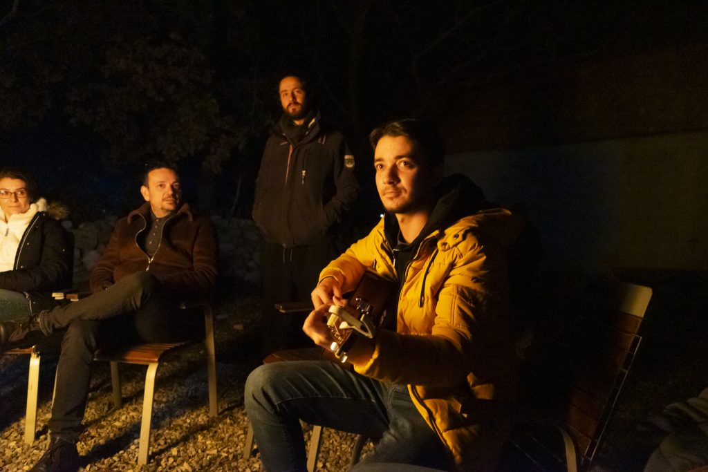 Foc de tabără și muzică la chitară am mai avut în tabere, dar a fost pentru prima dată când am introdus poezia, acompaniați pe fundal de sunetul lent al chitarei lui Marius Ungureanu. A fost atât de frumos să ne ascultăm unii pe alții citind și recitind poezii, să fim atenți unii la alții, să ne simțim emoțiile din voce. Poezia va continua în tabere, pentru că acest moment este și el unul de meditație și de liniște. Multă lume este reticentă când vine vorba de poezie (de la ea a pornit întrebarea cunoscută de toți, „Ce a vrut să spună autorul?”), însă cu cât citim și recitim mai mult cu atât mai minunat descoperim că este. Seara a continuat cu melodii cântate împreună, acompaniați de chitara și vocea lui Corneliu Popescu (care oferă și lecții la chitară online), continuând să cântăm și la masa de seară.
