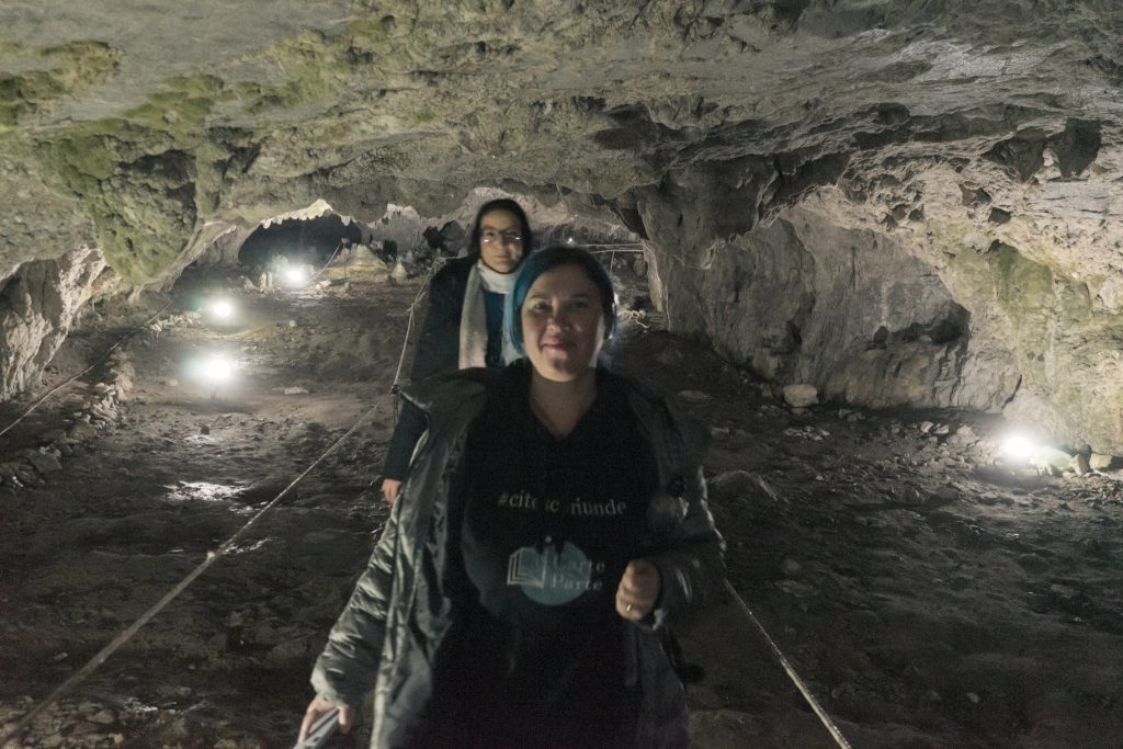 Drumeția am făcut-o la pas, ca toate drumețiile din taberele de lectură. Drumul a fost lejer, la pas, prin sat, de aproximativ trei ore dus-întors, cu Melania Lera ghid, unul dintre proprietarii Ograda Bunicilor. Peștera Muierilor – prima peșteră electrificată din România – este cunoscută ca loc în care se adăposteau femeile și copiii, când soții, respectiv tații erau plecați la luptă. Cu o lungime de aproximativ 3.600 de metri, dispusă în patru niveluri, peștera impresionează datorită formațiunilor dezvoltate în interior și a relicvelor descoperite în ea. Domul Mic și Domul Mare, Sala Altarului sunt doar câteva dintre atracțiile peșterii. O altă atracție a fost Scheletul ursului, iar pe parcurs ne-a întâlnit și cu o mulțime de lilieci „adormiți” pe tavanul peșterii.