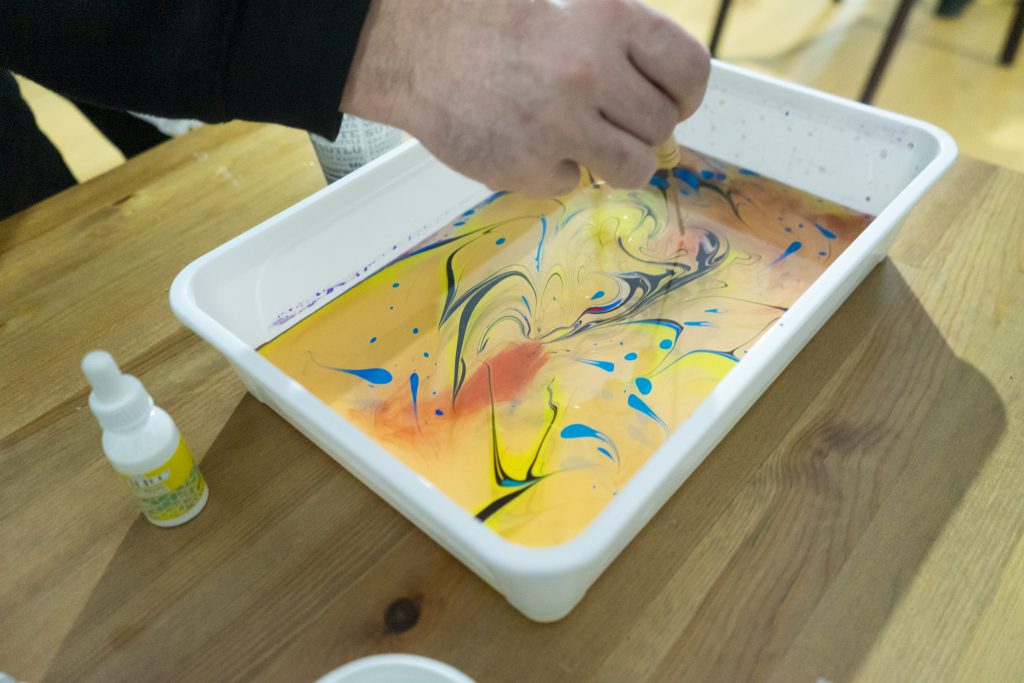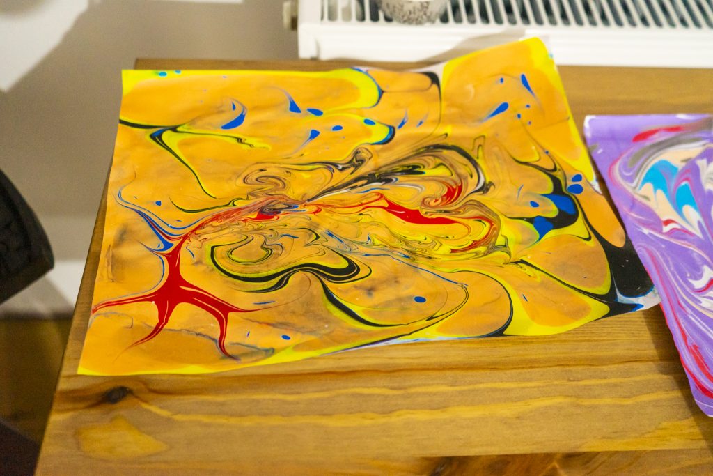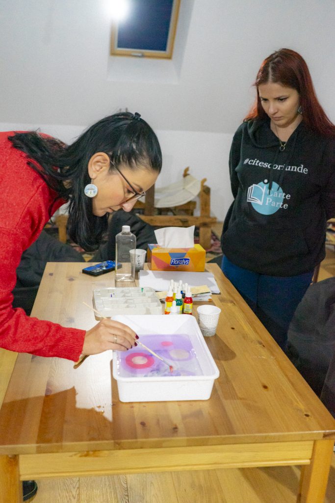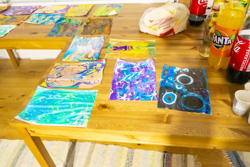 A fost iar ceva nou în tabără, iar pentru asta revin la Anca, pentru că a adus această noutate, o activitate relaxantă pentru toți. Se numește, de fapt, Atelier Ebru sau “Dansul apei și al culorilor”, unde fiecare s-a jucat cu o multitudine de culori prin apă.