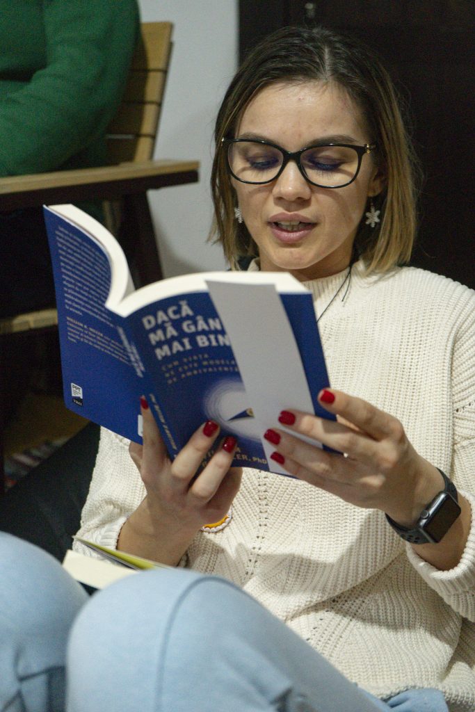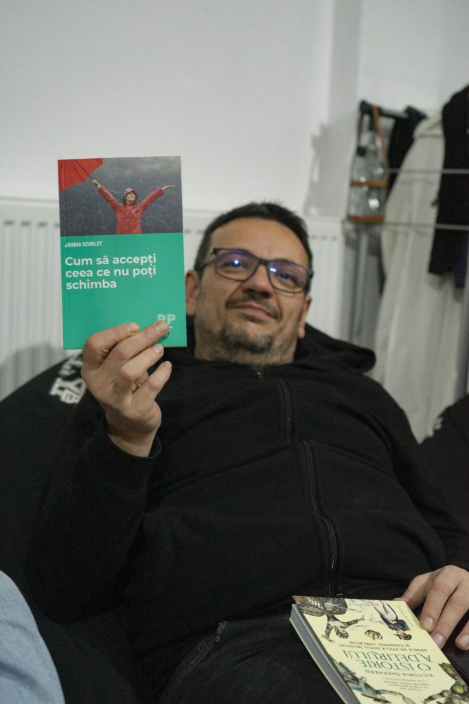 Pe lângă cărți am avut și jocuri distractive, atât literare, cât și de cunoaștere interpersonală. Jocul AM/N-AM continuă să aducă glume, râsete și discuții personale, iar jocul Aha! are rolul de a afla mai multe unii despre ceilalți. Acestea sunt momentele în care ne cunoaștem și creăm conexiuni.