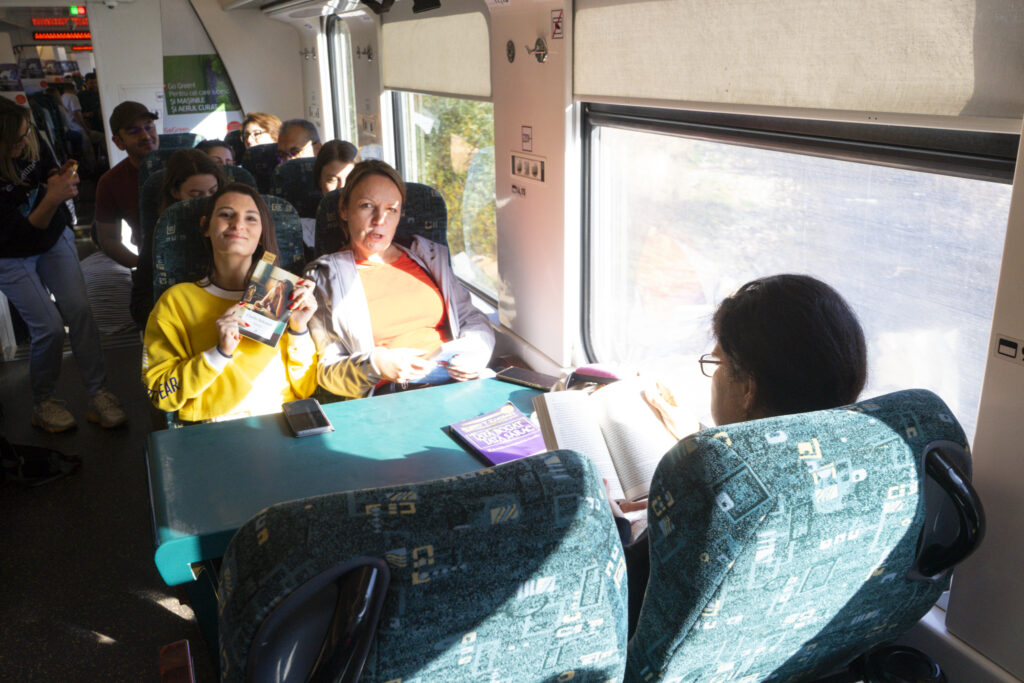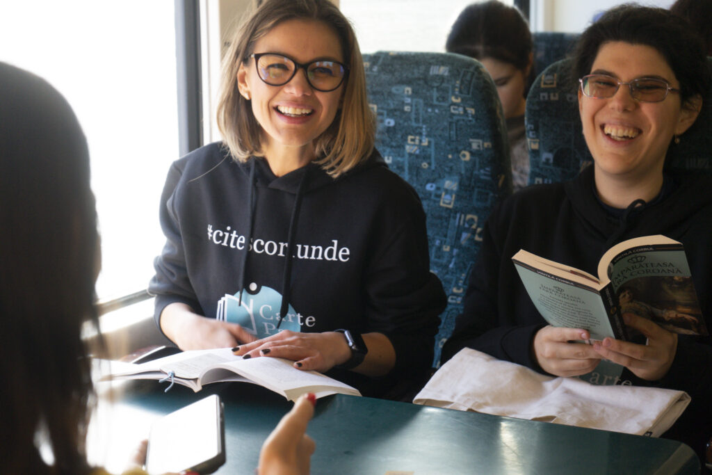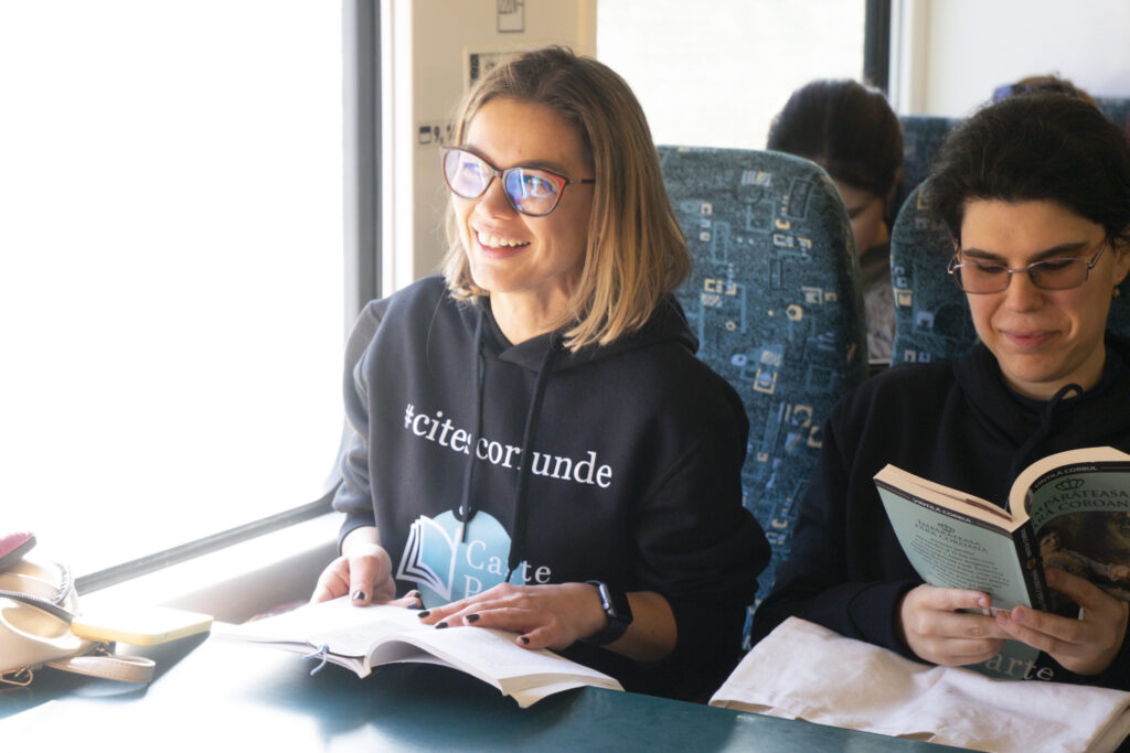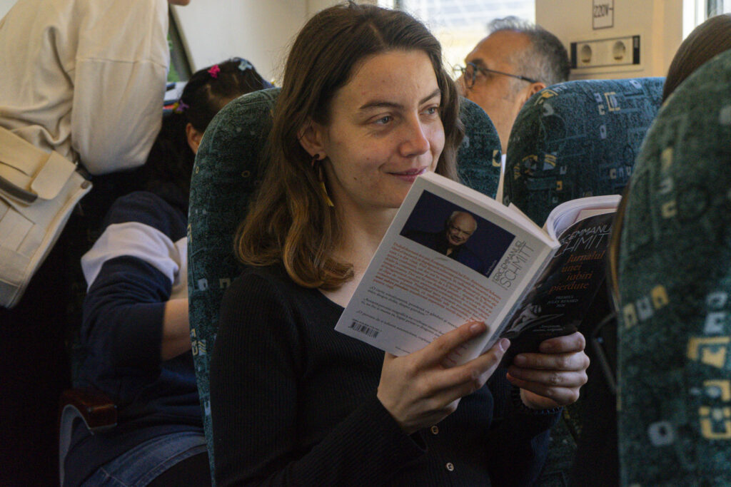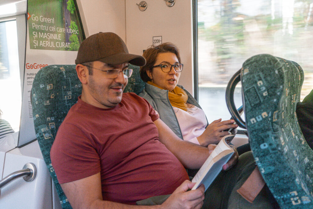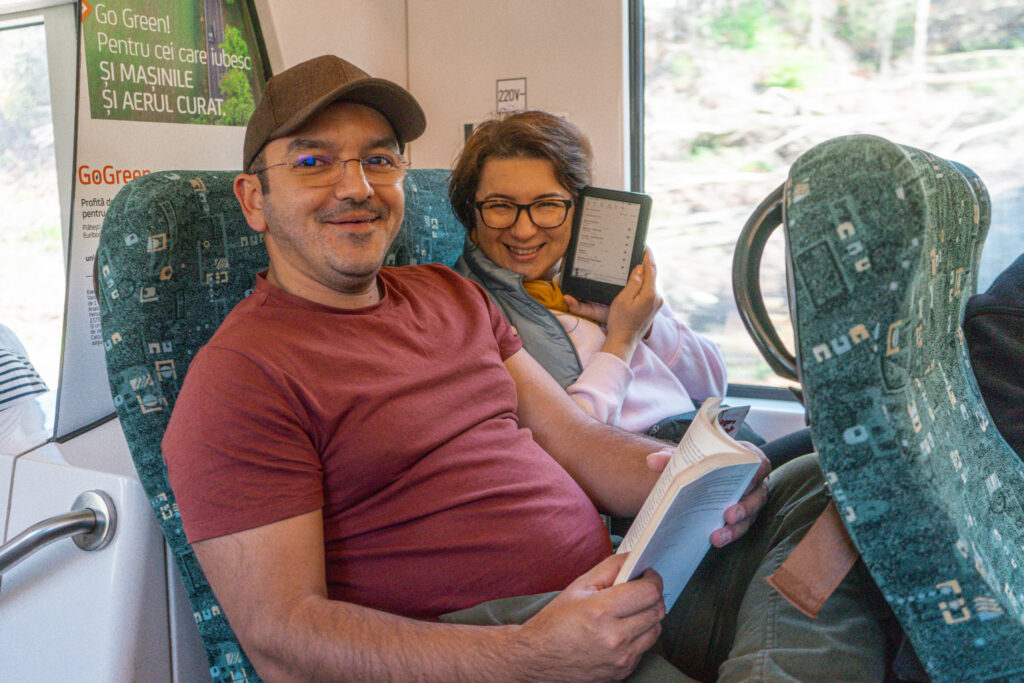 Un moment special a fost atunci când am citit împreună în tren. Drumul a fost plăcut de la Sinaia la Predeal, călătorind cu Softrans, dar nu putem spune același lucru și despre drumul de întoarcere, de la Predeal la Sinaia, când am călătorit cu CFR, iar călătorii care ocupaseră locurile nu au dorit să le elibereze, deși am avut bilete. Rămânem însă la partea frumoasă a lucrurilor:). Sunetul roților pe șine și priveliștea pitorească ne-au creat un cadru unic pentru a ne pierde între paginile cărților pe care fiecare le-a avut la el.