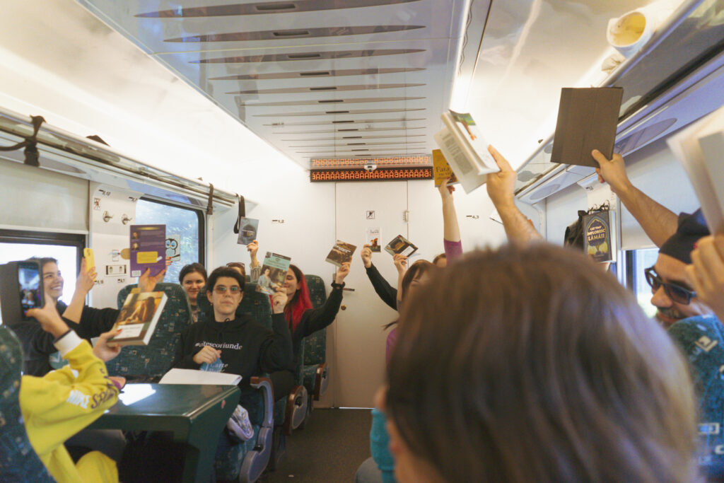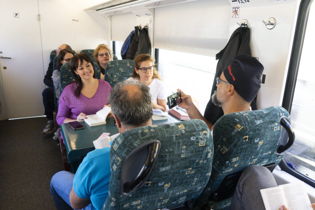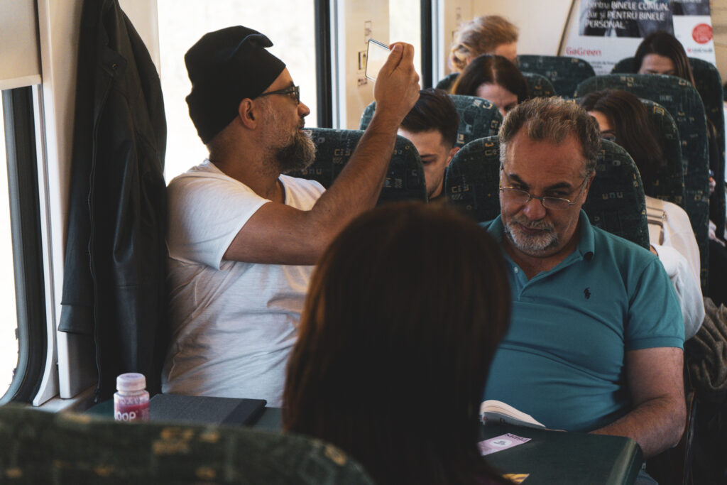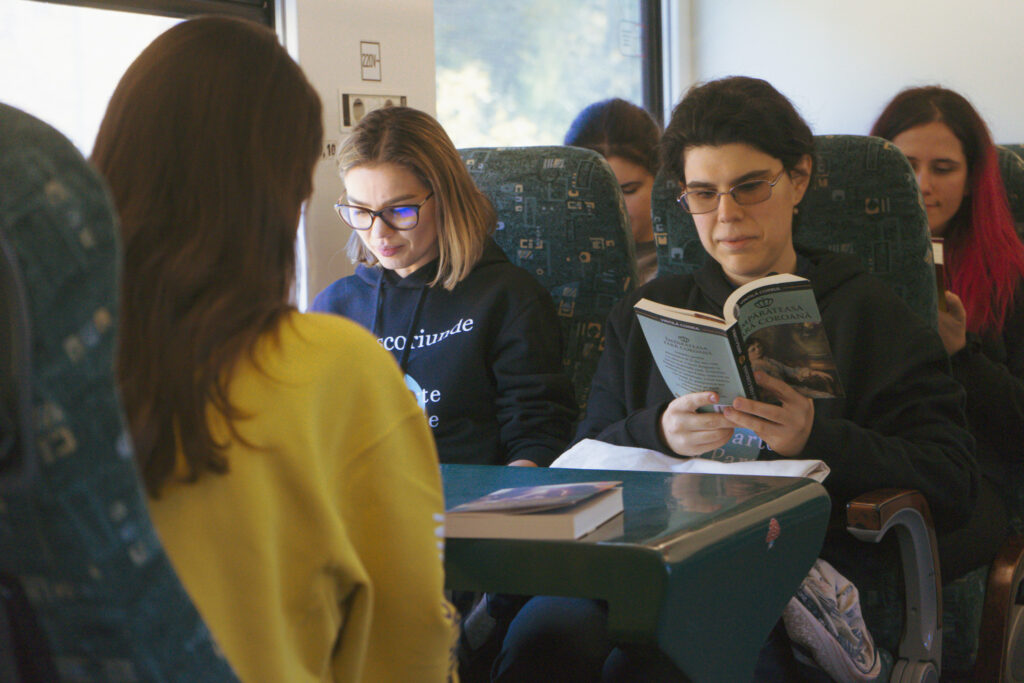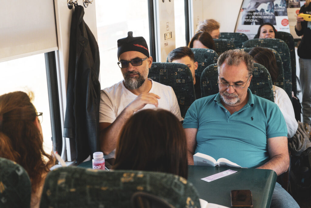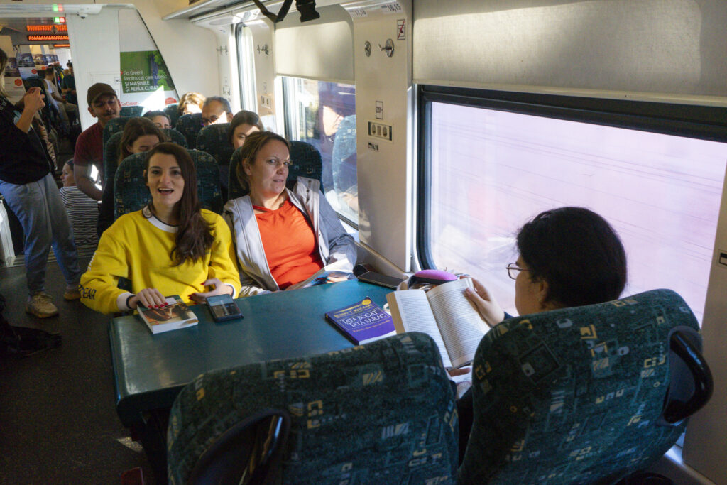 Un moment special a fost atunci când am citit împreună în tren. Drumul a fost plăcut de la Sinaia la Predeal, călătorind cu Softrans, dar nu putem spune același lucru și despre drumul de întoarcere, de la Predeal la Sinaia, când am călătorit cu CFR, iar călătorii care ocupaseră locurile nu au dorit să le elibereze, deși am avut bilete. Rămânem însă la partea frumoasă a lucrurilor:). Sunetul roților pe șine și priveliștea pitorească ne-au creat un cadru unic pentru a ne pierde între paginile cărților pe care fiecare le-a avut la el.