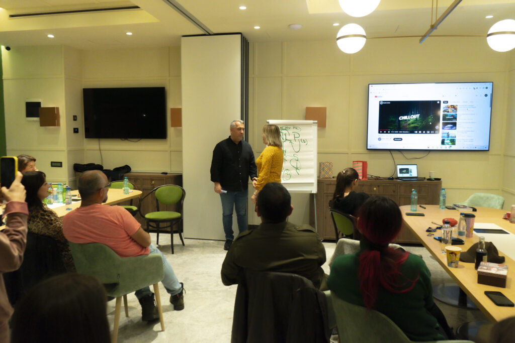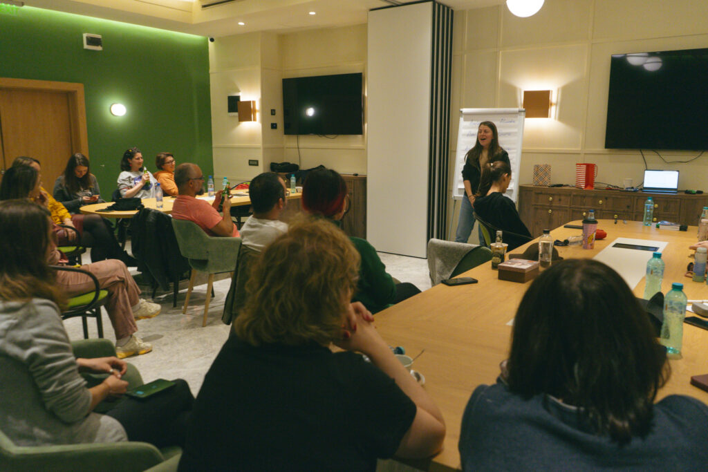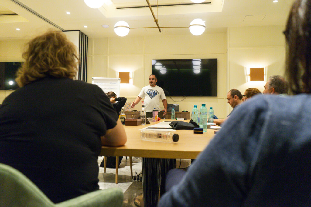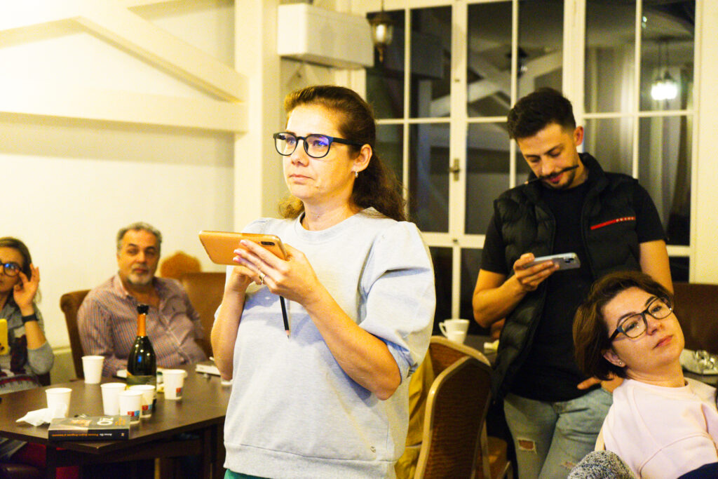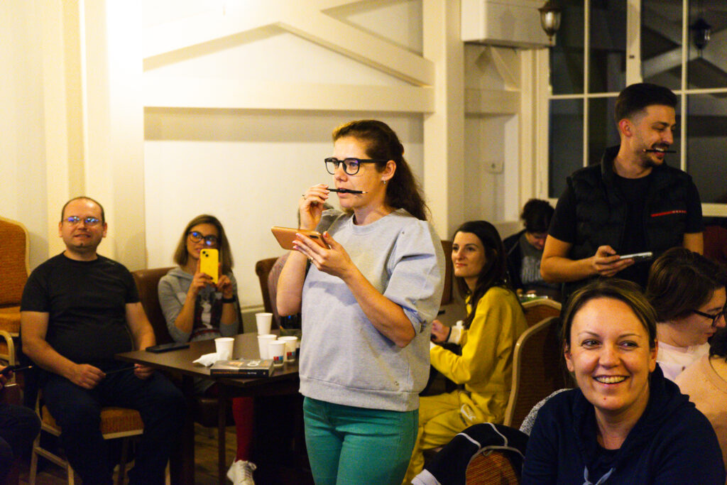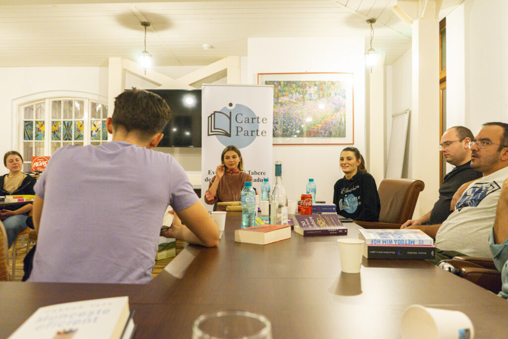 Tabăra noastră a început vineri seară, dar traficul de pe Valea Prahovei nu ne-a adus împreună pe toți, la ora stabilită, așa că mulți au mâncat separat și au ajuns direct la workshop. A fost util pe partea de conexiune, iar Adina Ioana Oancea, care ne-a oferit una dintre cele mai memorabile experiențe: meditație ghidată. Am învățat cum să ne relaxăm și să ne concentrăm asupra cărților într-un mediu armonios, folosind puterea cristalelor pentru a ne elibera de stresul cotidian.
