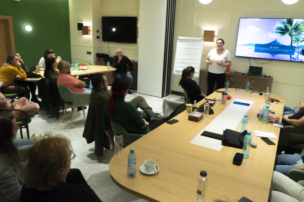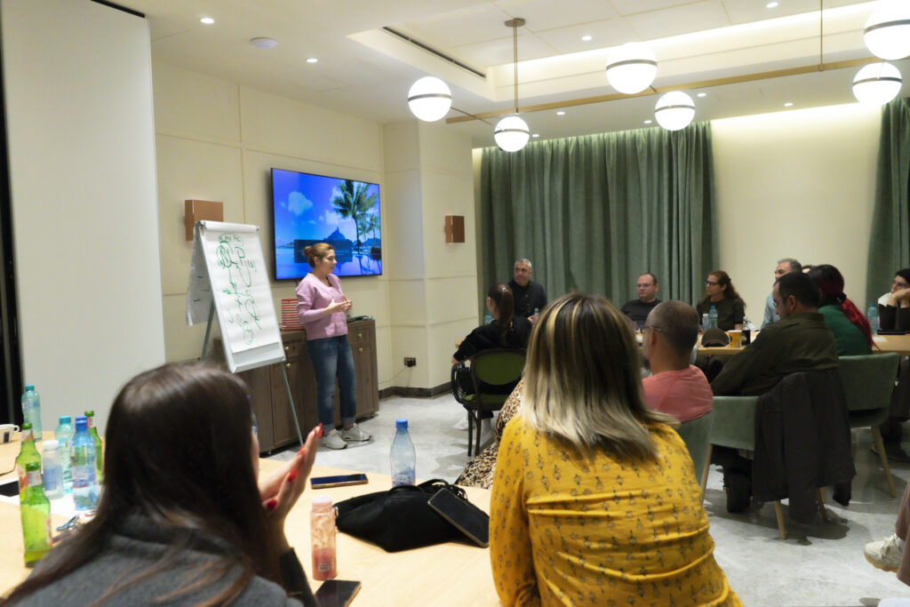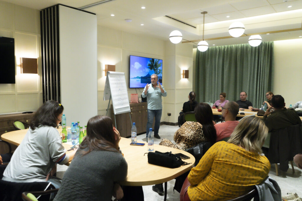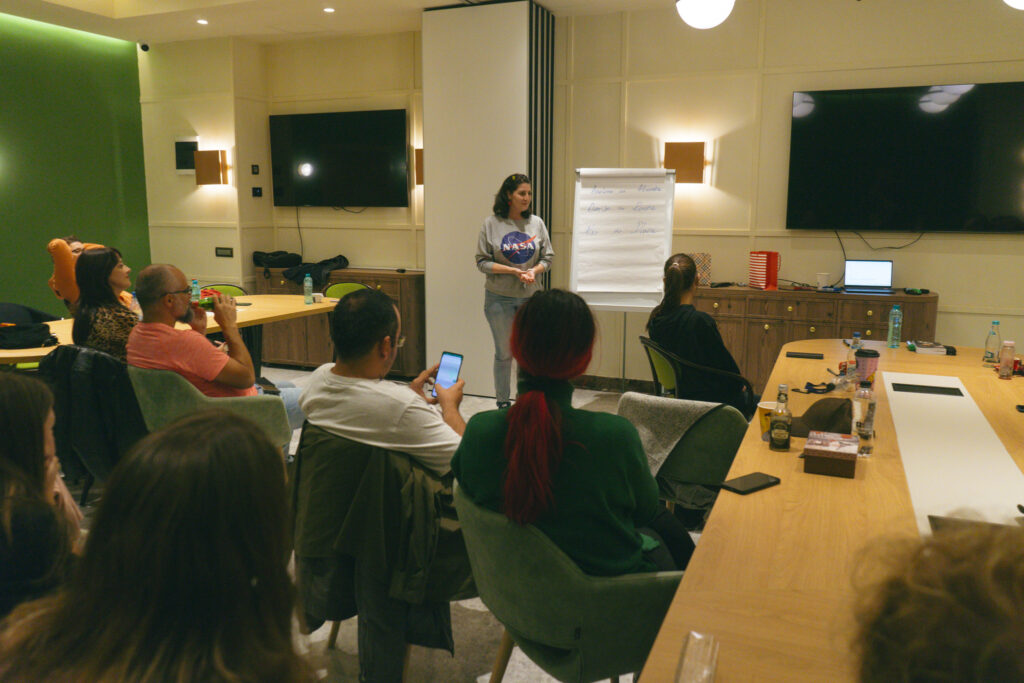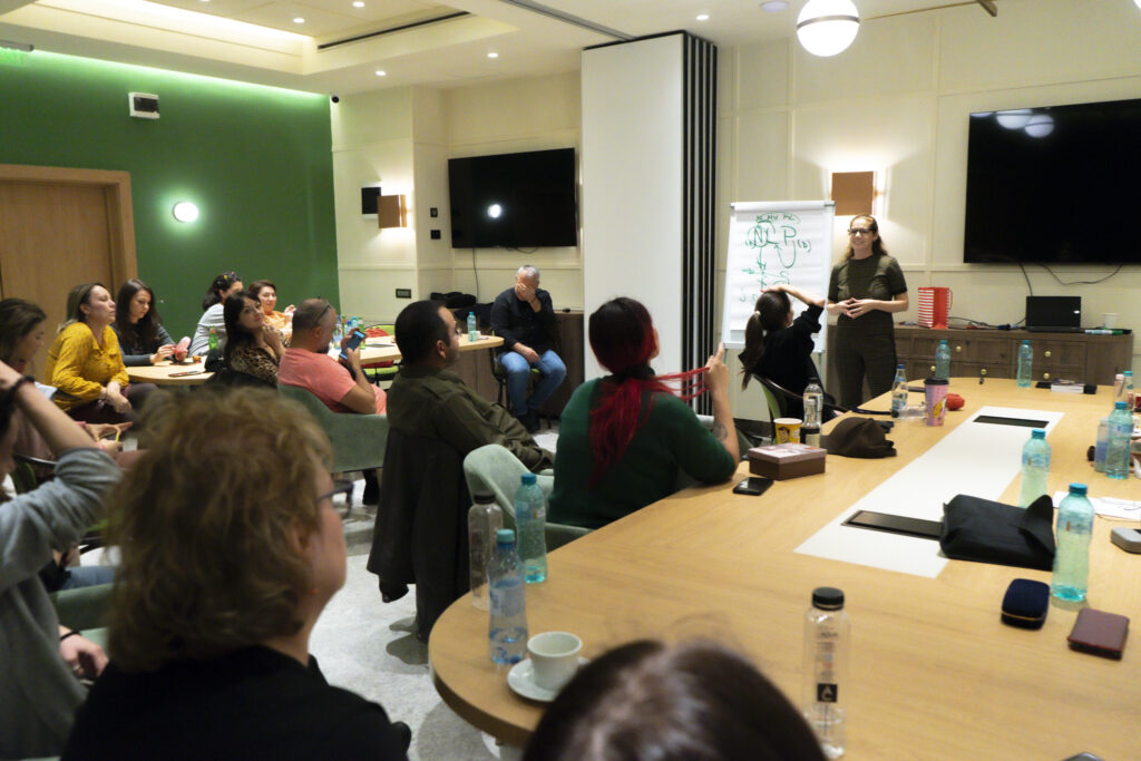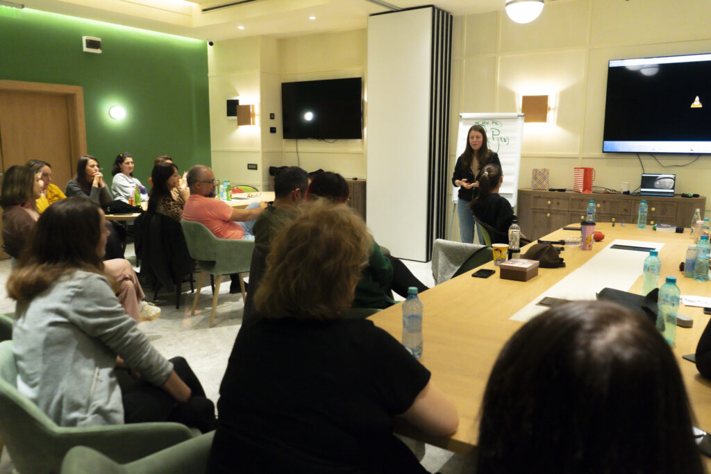 Tabăra noastră a început vineri seară, dar traficul de pe Valea Prahovei nu ne-a adus împreună pe toți, la ora stabilită, așa că mulți au mâncat separat și au ajuns direct la workshop. A fost util pe partea de conexiune, iar Adina Ioana Oancea, care ne-a oferit una dintre cele mai memorabile experiențe: meditație ghidată. Am învățat cum să ne relaxăm și să ne concentrăm asupra cărților într-un mediu armonios, folosind puterea cristalelor pentru a ne elibera de stresul cotidian.