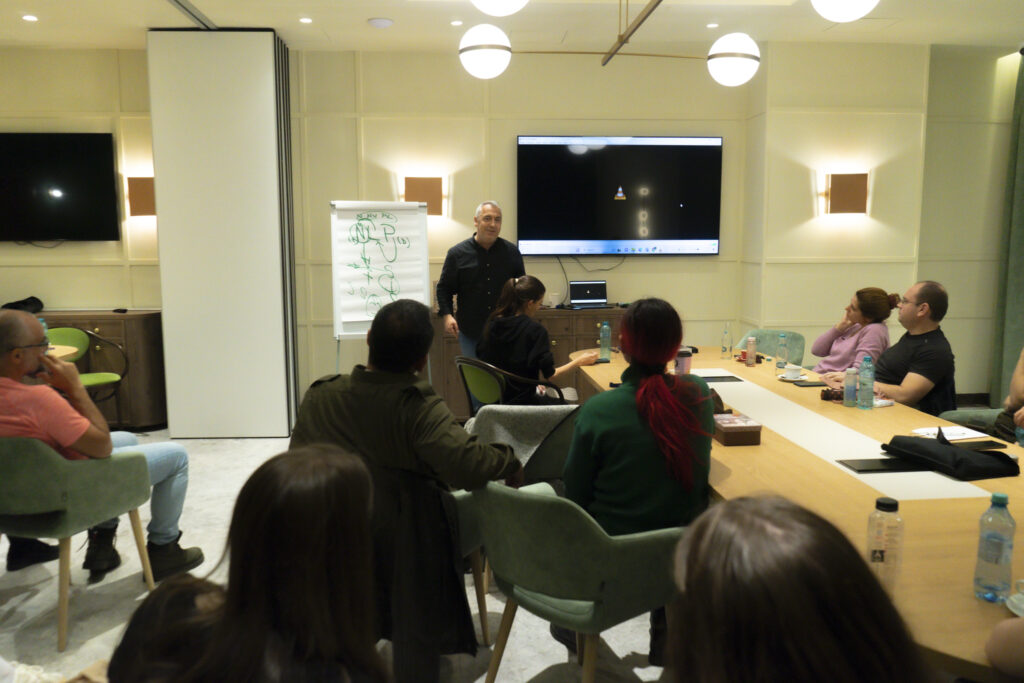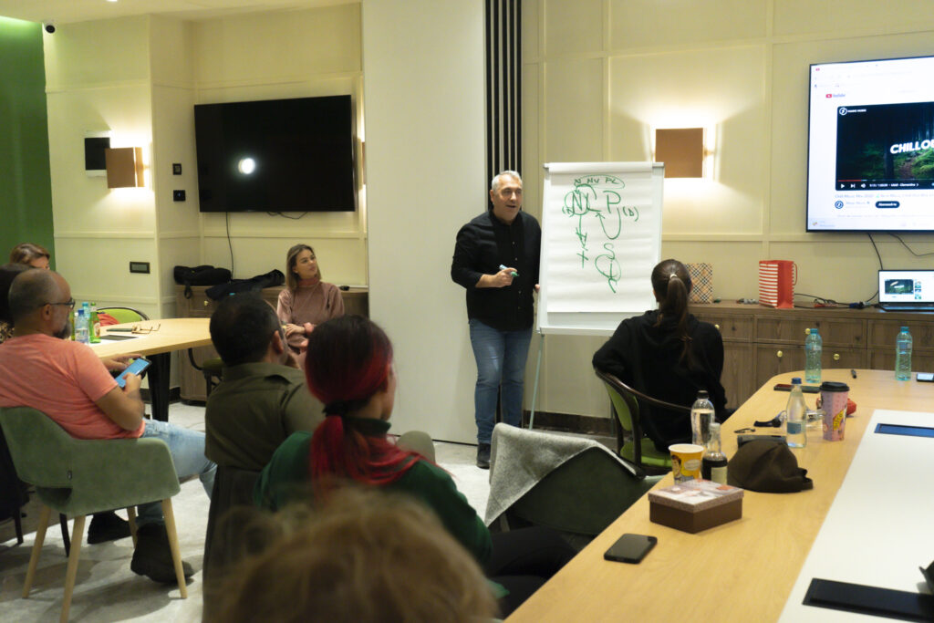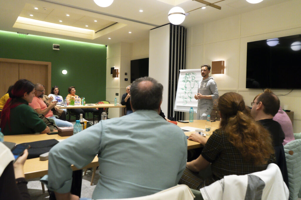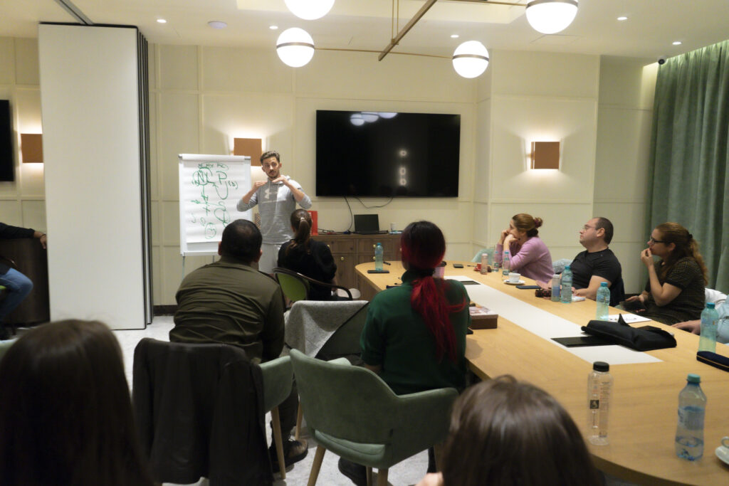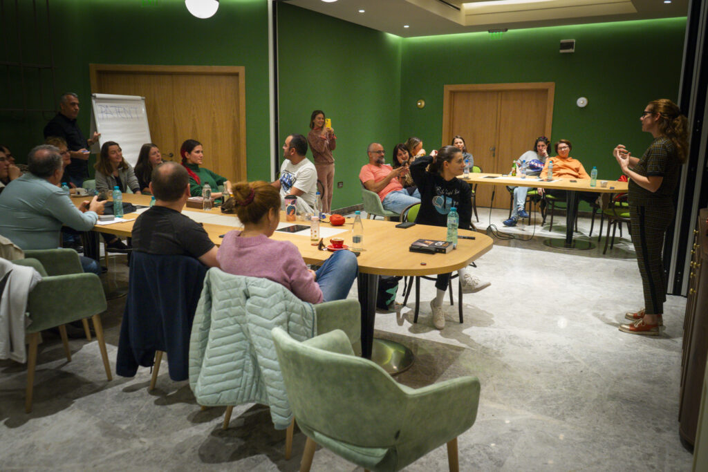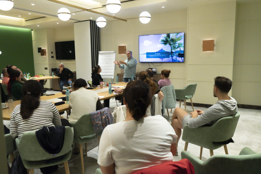 Tabăra noastră a început vineri seară, dar traficul de pe Valea Prahovei nu ne-a adus împreună pe toți, la ora stabilită, așa că mulți au mâncat separat și au ajuns direct la workshop. A fost util pe partea de conexiune, iar Adina Ioana Oancea, care ne-a oferit una dintre cele mai memorabile experiențe: meditație ghidată. Am învățat cum să ne relaxăm și să ne concentrăm asupra cărților într-un mediu armonios, folosind puterea cristalelor pentru a ne elibera de stresul cotidian.