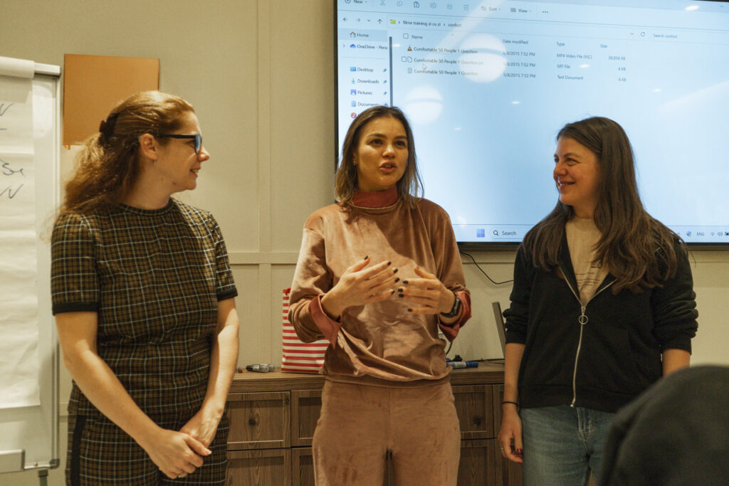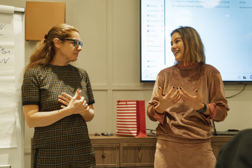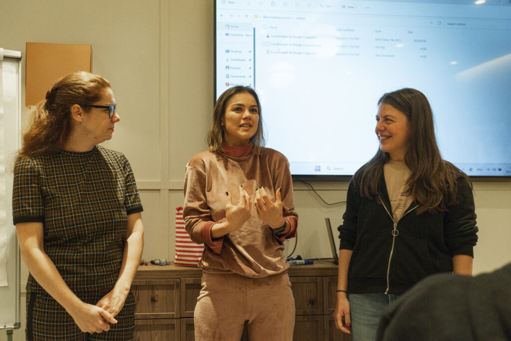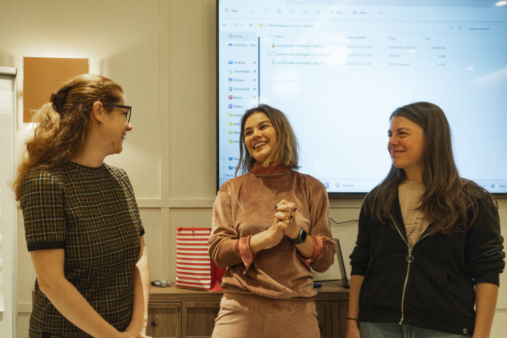 Datorită manulalului oferit de Carmen Ivanov de la Dicție.ro am putut face un set de exerciții atât de respirație, cât și de dicție propiu-zisă. Îi mulțumim Biancăi care s-a conectat cu noi prin Zoom și ne-a oferită această experiență interesantă.