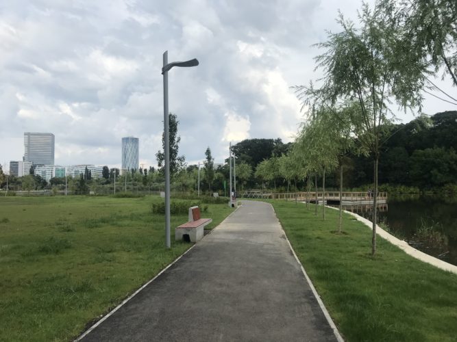 Nu mai fusesem până acum aici. Nici nu știam că există un lac Floreasca, să fiu sinceră, având în vedere că la foarte mică distanță, în amonte, este Lacul Herăstru, iar de partea cealaltă, în aval, lacul Tei. Mai mult decât atât, nici nu știam că urmează să fie plajă, un ștrand mai exact. Lucrările au început în 2015. Locația trebuia să fie gata într-un an. Apoi Gabriela Firea a declarat că la finalul anului 2017 ne vom bucura, citez, ”de cel mai modern circuit turistic din țară”. Ar cam trebui să îi dea drumul curând, căci bugetul a fost nu mai puțin de 88 de milioane de euro. Dar nu vreau să discut aici politică sau cât de greu se mișcă lucrurile în România. Mai târziu, tot va fi gata și acesta. Între timp s-or mai păpa niște bani, dar dacă stăm să vedem totul într-un mod negativ unde naiba ajungem? Revin mai bine la acest superb lac și, până când va fi gata proiectul la care se lucrează – vă zic, o să fie superb (piscine, vaporașe, bărcuțe, scene, amfiteatre, hidrobiciclete, locuri de joacă, piste pentru bibiclete etc) – vă aduc o boabă de istorie (trăiască Wikipedia!). 70 de hectare, atât e de mare Lacul Floreasca. Amenajarea acestuia a început în anul 1936, pe cursul râului Colentina (din nou, habar n-aveam… Colentina – râu?!). Suprafața lacului Floreasca este împărțită în două, de proprietarii drepturilor de pescuit: