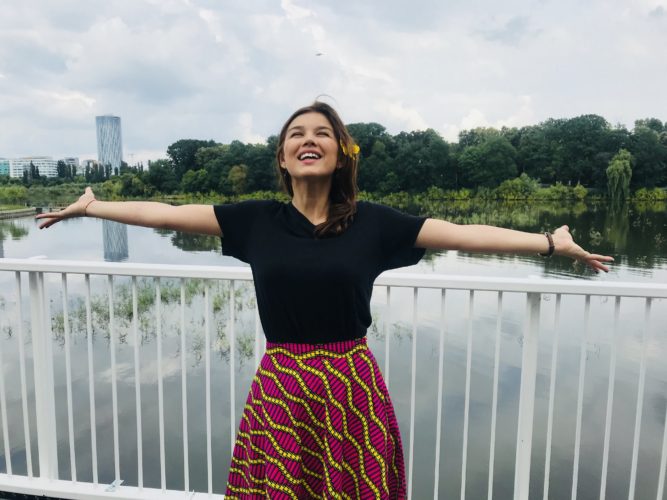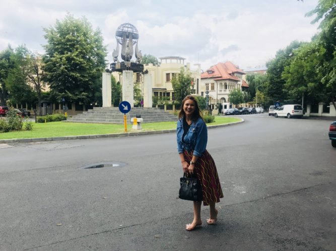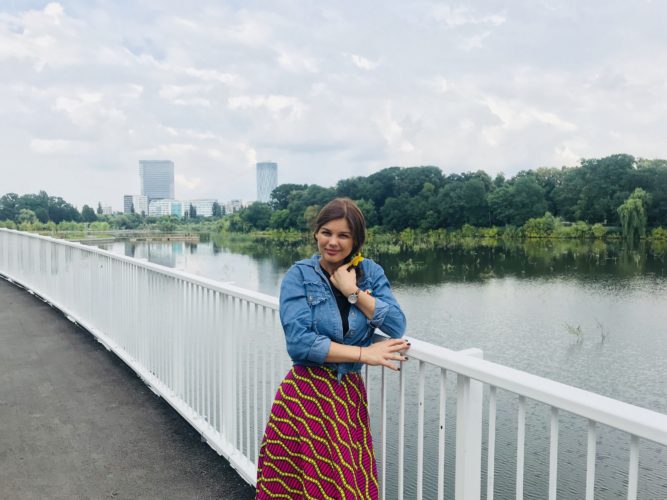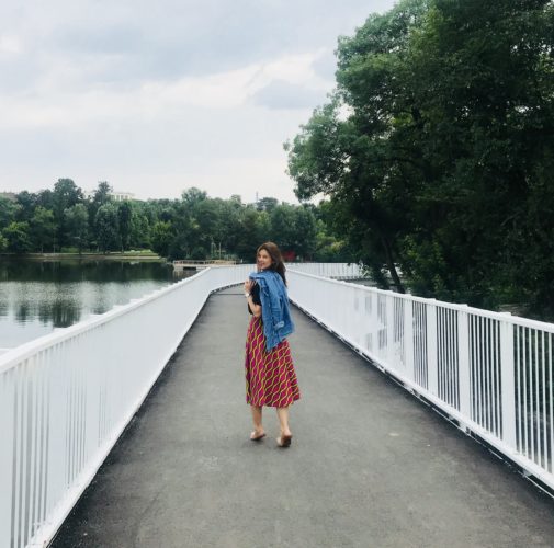 Chiar voiam să scot mai repede fusta asta la plimbare. Am croit-o acum mai bine de două luni. Taman bine, weekendul ce tocmai a trecut am ieșit în oraș, deși stătea să plouă, dar pentru câteva ore am avut vremea de partea mea, așa că lăsați-mă, rogu-vă, să mă laud și eu cu acest produs #handmade, de care m-am folosit acum pentru a scrie despre frumusețile Bucureștiului :).