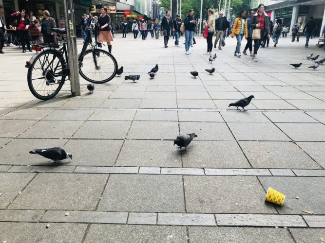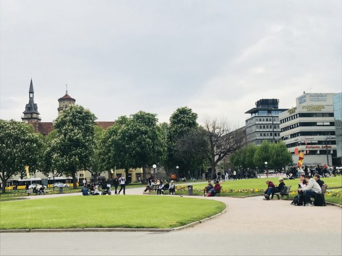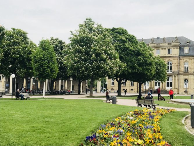 E frumos, ca oricare alt oraș al cărui centru îl vizitezi. Curățel (adică vezi și la ei chiștoace aruncate sau șervețele sau pahare de plastic – puține, ok, dar sunt), o mulțime de terase colorate de oameni, flori și multe alte lucruri frumoase. Prietena mea îmi spune mereu că toți nemții sunt groaznici, acri și imposibil de socializa cu ei, pentru că nu vor să vorbească engleză. Înseamnă că eu… am lipici la ei 😁, pentru că am socializat în centru, pe bancă, cu oricine mă băga în seamă, chiar și cu un nene de vreao 50 și ceva de ani, căruia îi tot spuneam că “English, French, Italian”, iar el nu vorbea decât germana. A trebuit să deduc ce mă întreabă, să intru pe Google Translate și să vorbesc cu omul. Ce să fac, era lângă mine și-mi vorbea, nu puteam fi nepoliticoasă 😊.