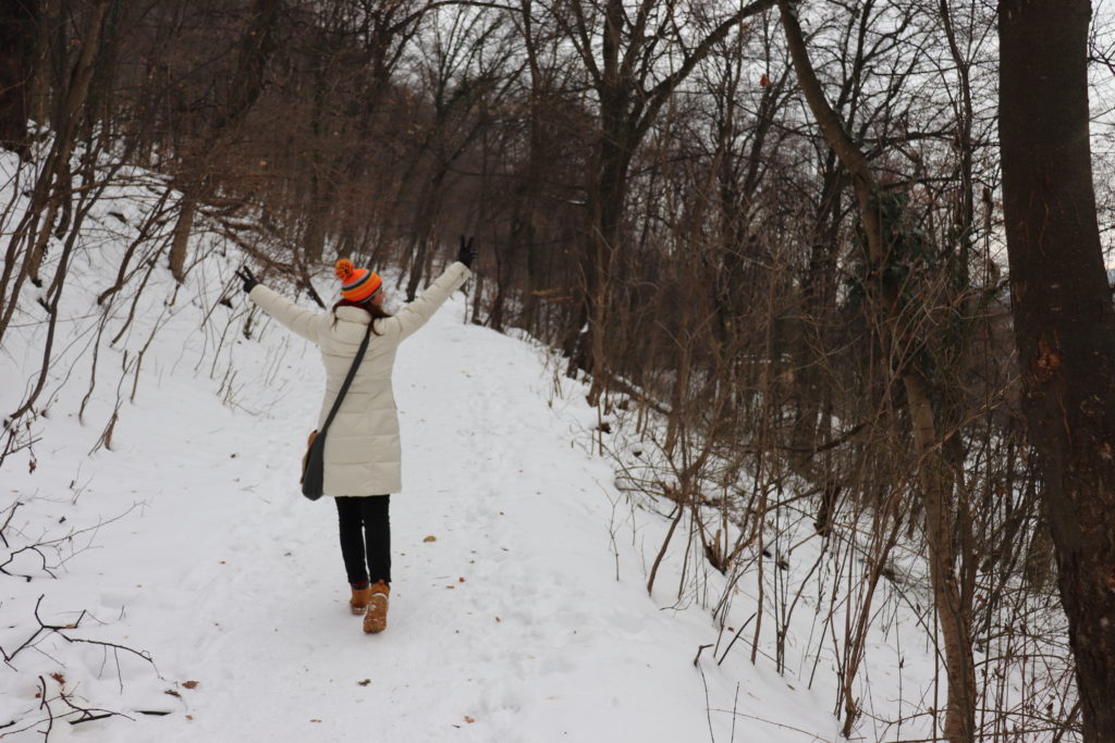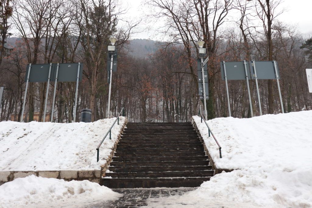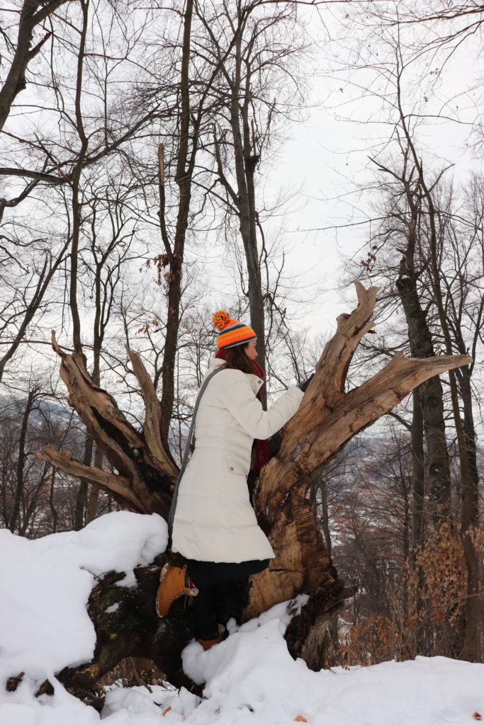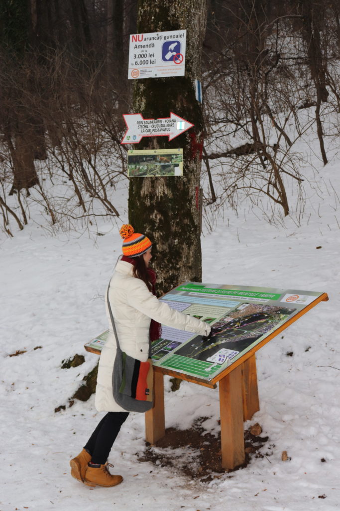 Nu sunt eu chiar o persoană a munților, adică sunt încântată la început, dar apoi mă ia oboseala și mi se taie cheful de urcat prin nămeți, însă două-trei ore de mers prin pădure, fie și prin zăpadă, pot să rezist :D. Am ales traseul marcat cu roșu, cel al serpentinelor, care e relativ ușor, dacă ai încălțămintea potrivită. Altfel poți să aluneci. A fost ok, nu mi-am rupt niciun picior, nici nu m-am întâlnit cu vreun ”moș martin” (o căprioară zău că mi-ar fi plăcut să zăresc; sau un iepuraș ceva), doar că la întoarcere am ales telecabina 😛 (2.40 de minute – 10 lei). Ar mai fi fost Drumul Cavalerilor, pe traseul marcat cu albastru. Iar cel mai greu traseu (dar și cel mai spectaculos pare-se) este cel marcat cu triunghiul galben, numit Treptele lui Gabony (167 de trepte). Cu altă ocazie, căci aveam ”galoșii” umezi :).