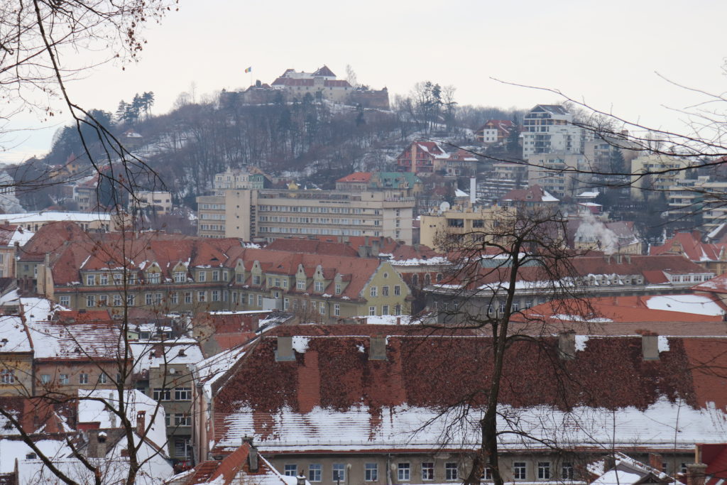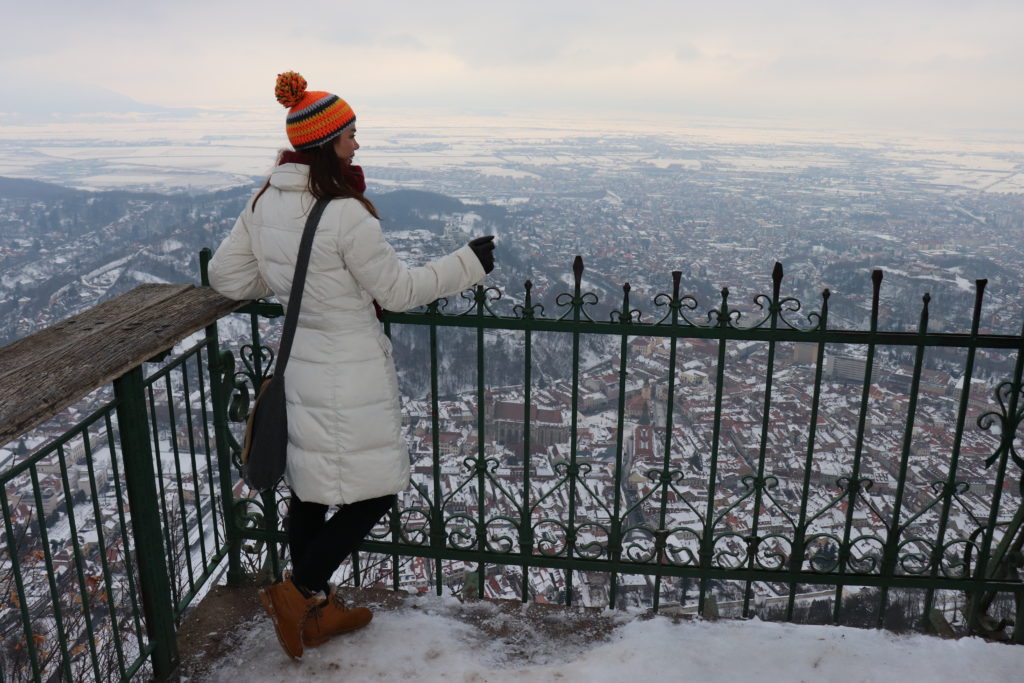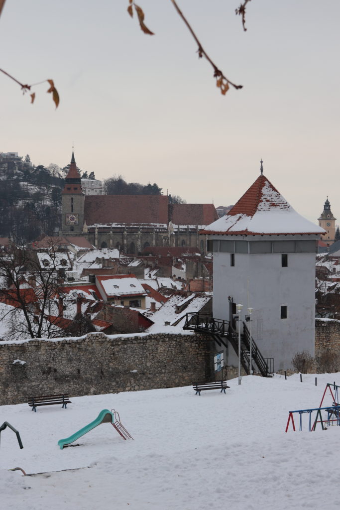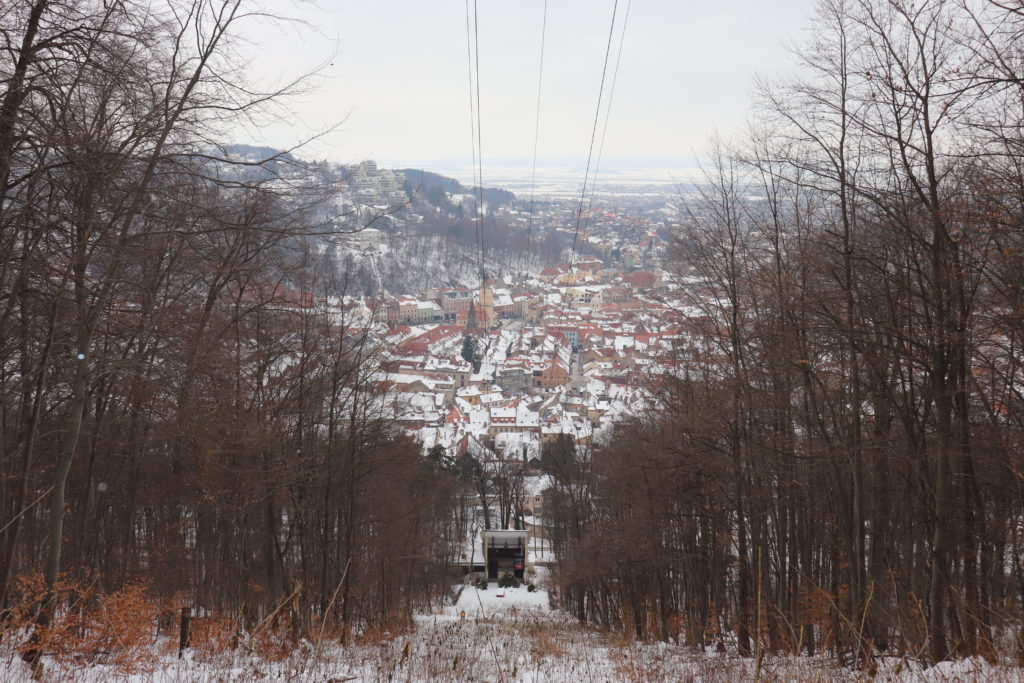 Brașovul este unul dintre acele orașe de care nu te poți plictisi (este în topul orașelor mele preferate, alături de Sibiu și Alba Iulia; probabil că am să mă îndrăgostesc de Sighișoara, oraș în care încă nu am ajuns). Iar când îl alegi ca destinație, mai ales dacă e doar pentru o zi, te gândești că vrei să ajungi mai repede ca să ai mai mult timp. Ei, ce credeți? Deși am plecat pe la 08.30 din capitală, am făcut nici mai mult, nici mai puțin de patru ore pe drum (!). Asta era sâmbătă dimineață. Concurs de ski la Sinaia din ce spuneau la radio. Ajunși în Brașov, am mâncat o ciorbă pe fugă, apoi am luat-o la pas către Tâmpa.