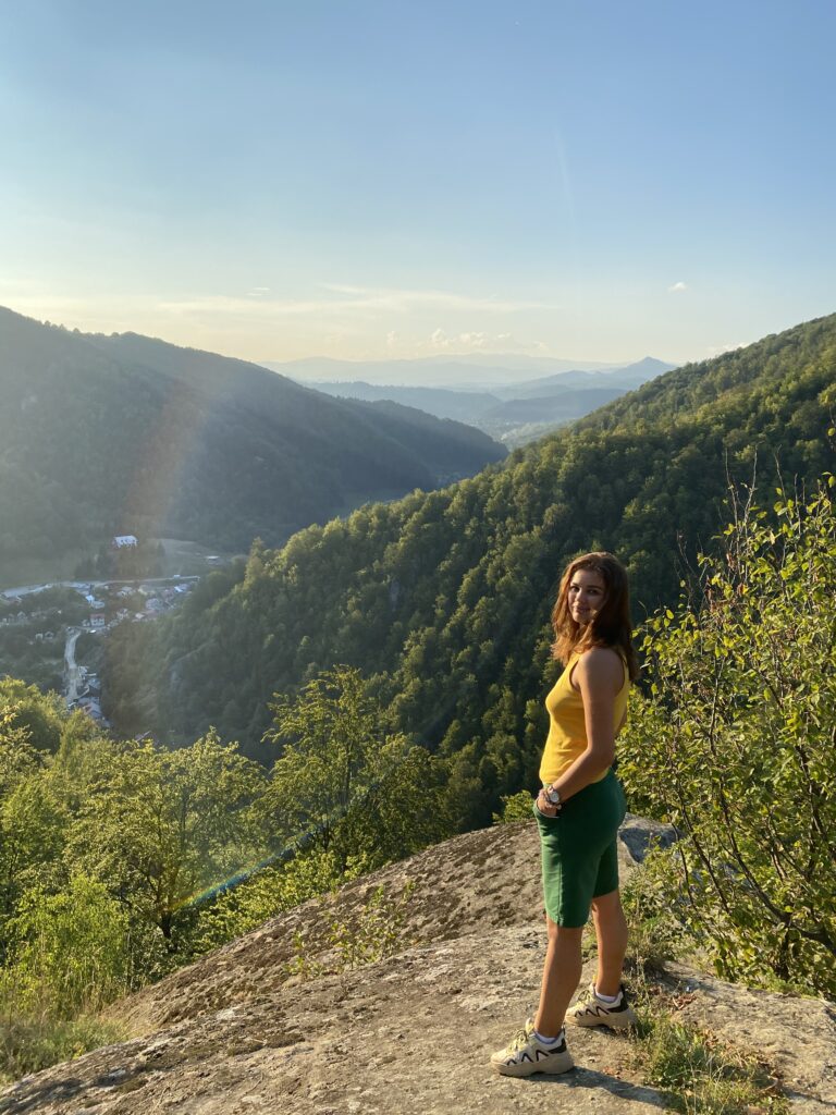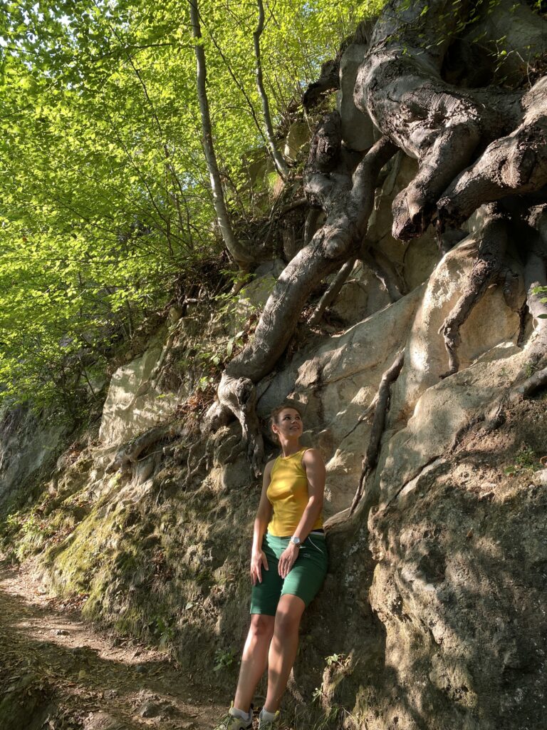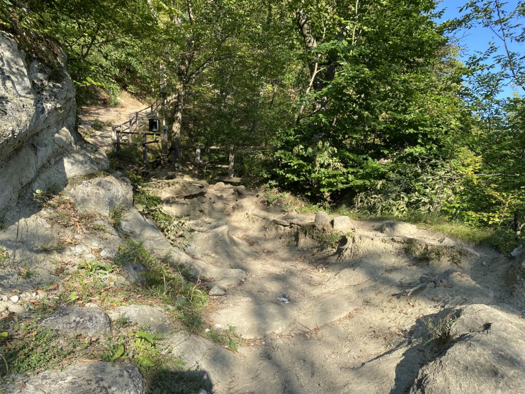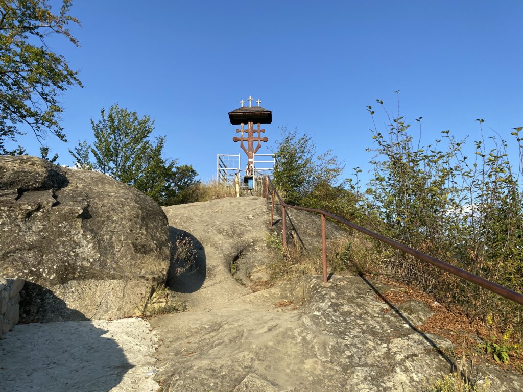 Ei, și iată că am ajuns sus de tot, pe tronul lui Negru Vodă, locul în care se spune că se ruga acesta pentru țara sa. Legenda spune că pașii din stâncă ar chiar chiar urmele picioarelor lui Negru Vodă. M-am tot întrebat (tot story pe Instagram puteți vedea) ce e cu acei pași, pentru că sunt două perechi: mai mari și mai mici. Am bănuit că ai domnitorului și ai soției sale, care se ruga împreună cu el. Știința nu a găsit încă o explicație pentru aceste urme, însă se pare că ele ar avea peste 100.000 de ani vechime (în 2005 chiar ai fost dezgropate oase umane).