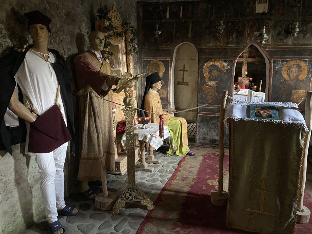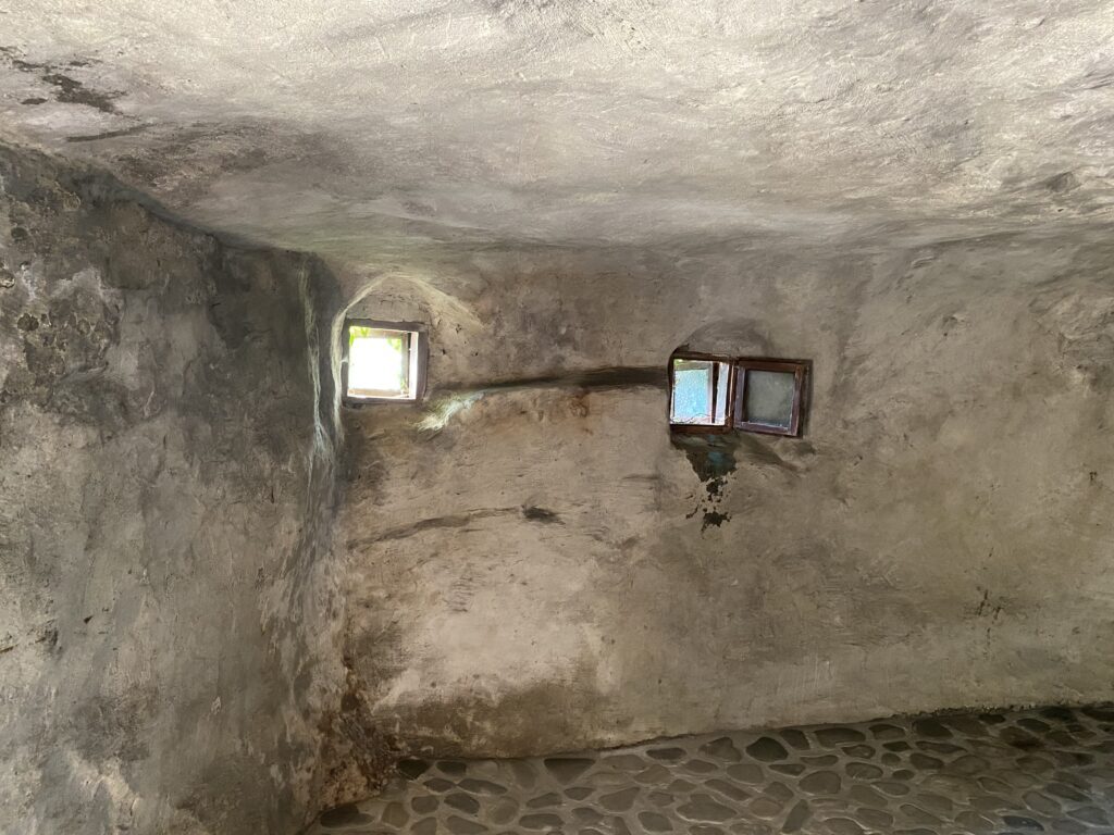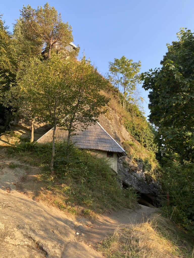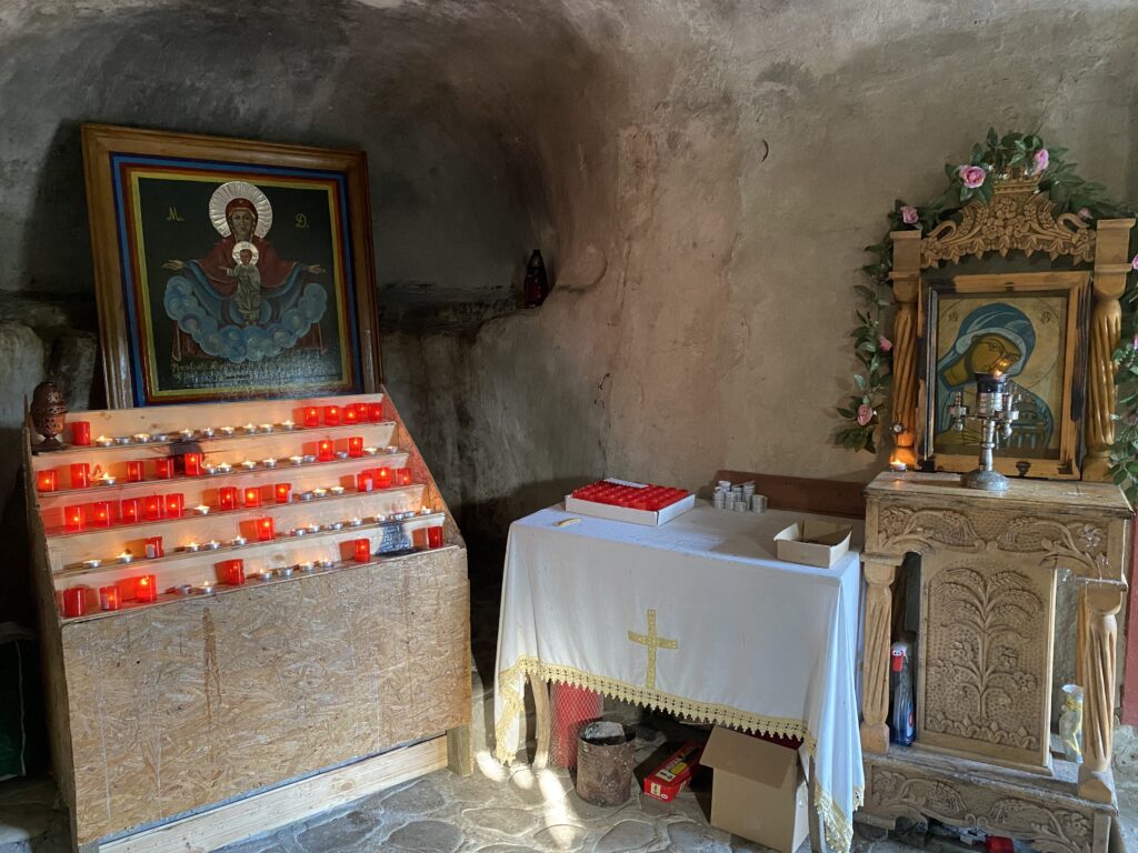 Biserica rupestră este cladită în peșteră și are două încăperi. În cea de-a doua m-am speriat puțin (dacă ați văzut la story-uri pe Instagram), unde se află și altarul. Aceasta datează din secolul al XIII-lea, iar pe tavan se observă, pictat și șters de vreme, chipul Mântuitorului.