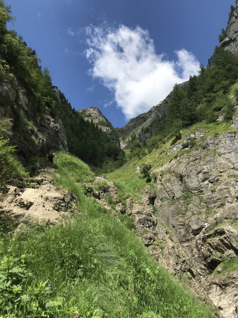 Anul trecut am mers pe Jepii Mari, la Cascada Urlătoarea, un traseu destul de ușor, pentru începători. Așa că m-am încumetat acum pe Jepii Mici, de care știam că are dificultate medie. Și medie a fost, chiar și pe stânci. Încă două trasee ca acesta și sunt pregătită pentru Piatra Craiului :). La un moment dat, m-am încălzit și am schimbat colanții cu pantaloni scurți. Și-ar fi fost necesare niște mănuși pe stâncile acelea, când mă ajutam și mă țineam de lanțuri. Mai era un kilometru până sus la platou. Atât de puțin și, în același timp, atât de greu. Însă cel mai lung parcă mi s-a părut cel de la Platou la Cruce.