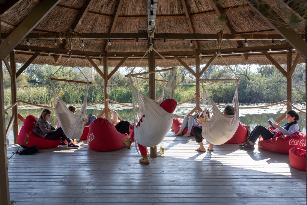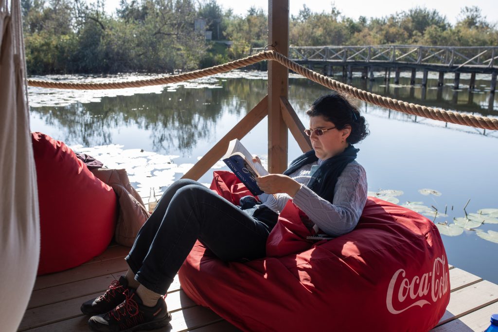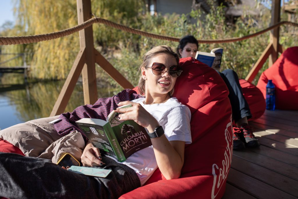 Una dintre cele mai relaxante activități ale taberei a fost „Citim împreună”, desfășurată pe pontonul Green Village. Înconjurați de frumusețea naturală a Deltei, participanții s-au așezat confortabil în hamace și puf-uri special amenajate pentru această experiență literară. Atmosfera a fost una de liniște și contemplare, în care foșnetul apei și ciripitul păsărilor au acompaniat paginile cărților. Această activitate a oferit un prilej minunat de a savura lectura într-un cadru de vis, unde natura și literatura s-au împletit armonios.