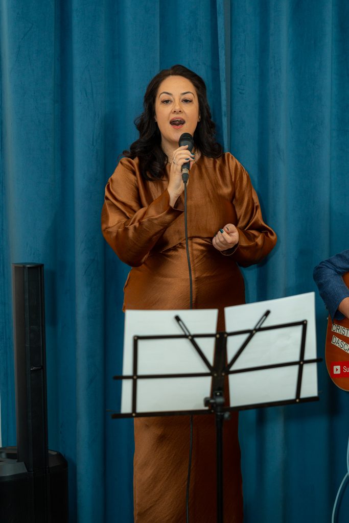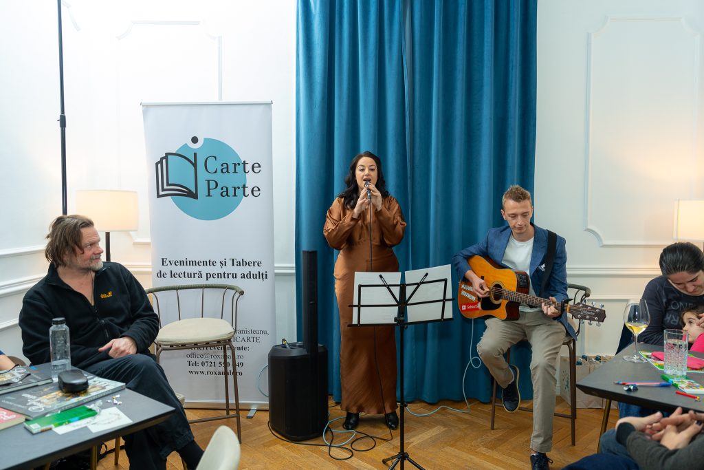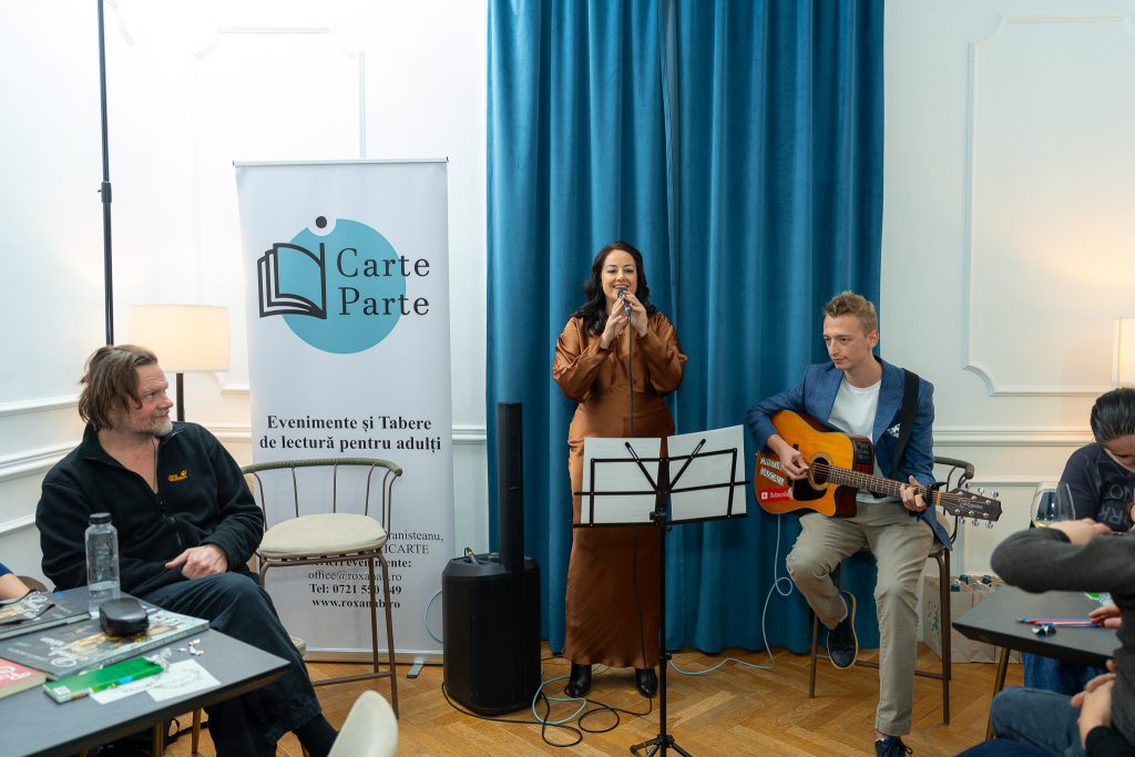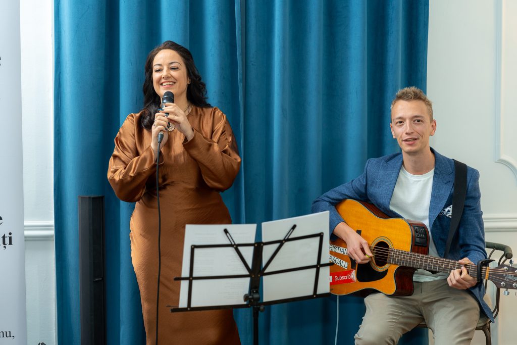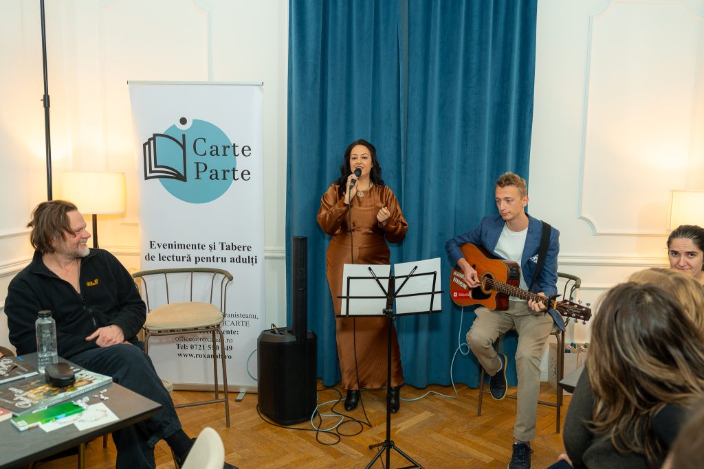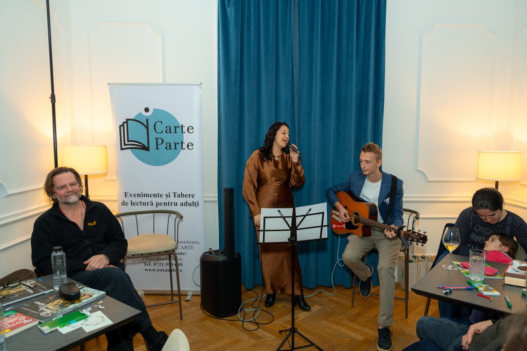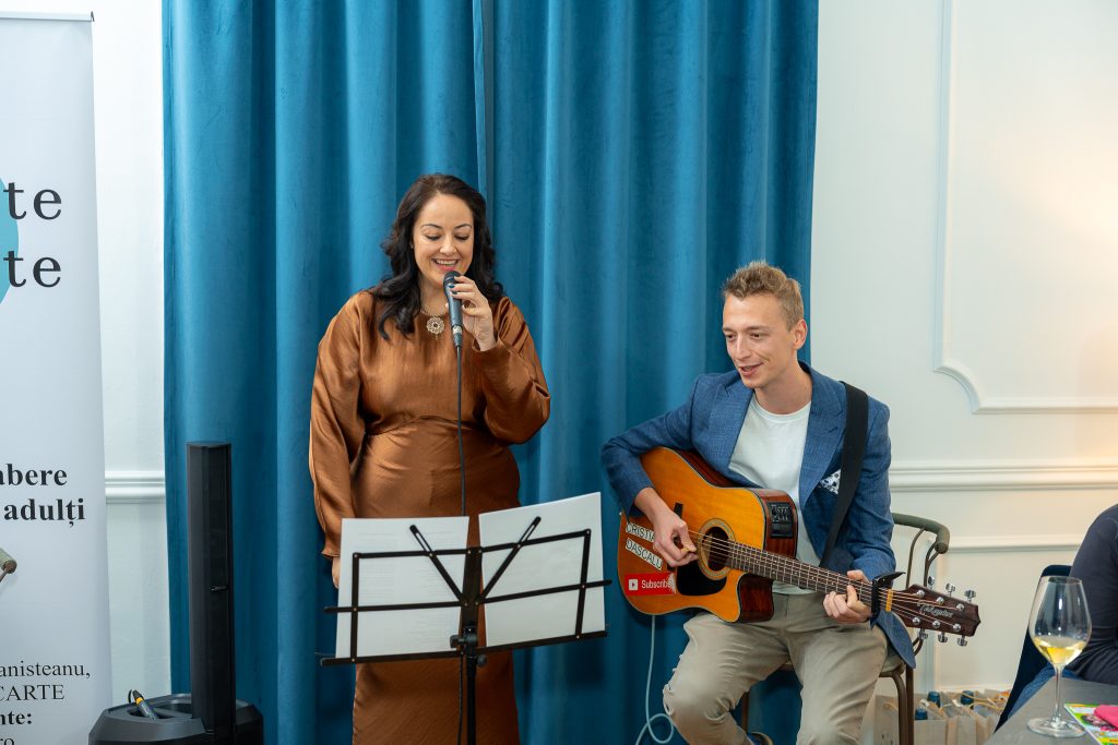 Pe parcursul serii, Maria Roxana Șerban, acompaniată de Cristian Dascălu la chitară, ne-a oferit o seară cu note muzicale emoționante. Cei doi au încântat publicul cu voci pline de pasiune și acorduri de chitară, creând un final perfect pentru un eveniment memorabil la Books and Wine 2023.