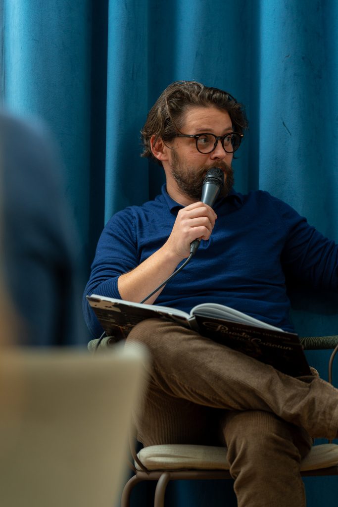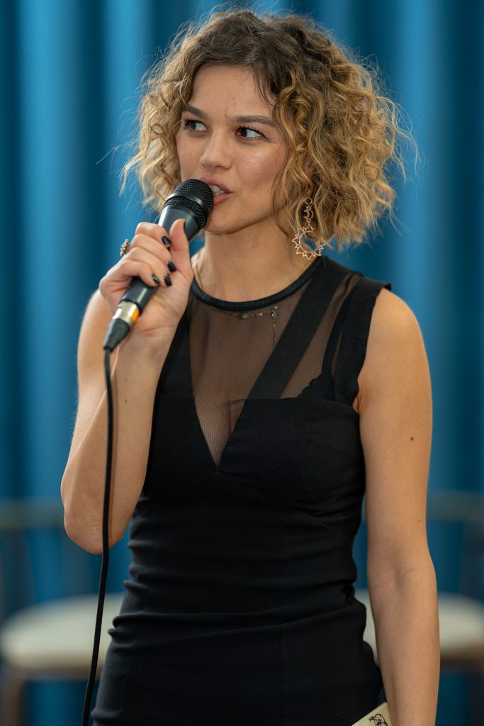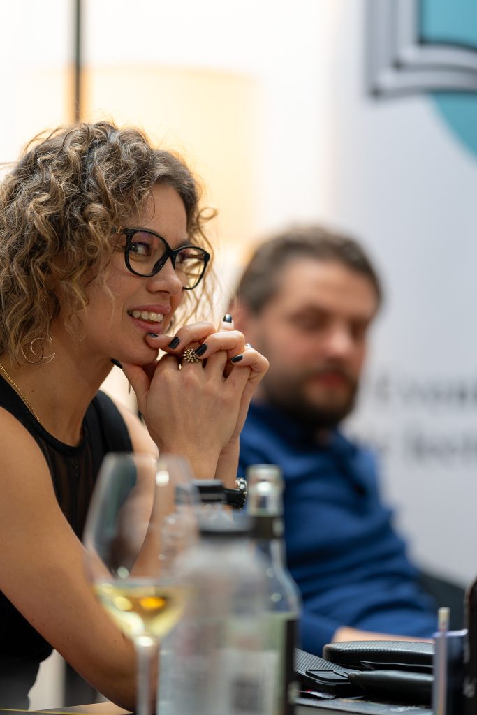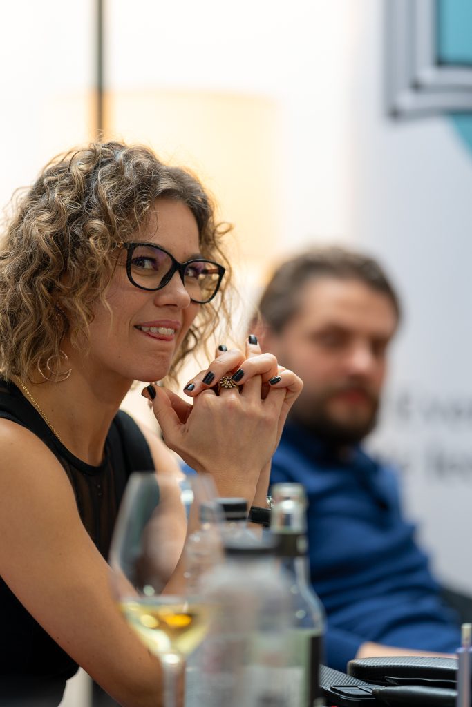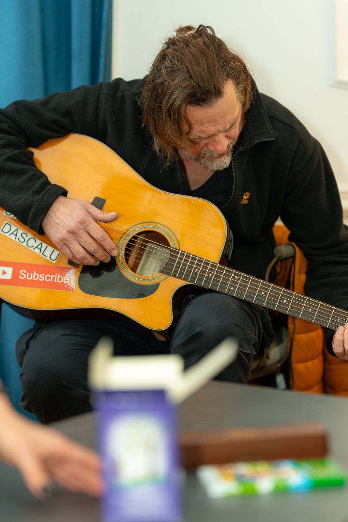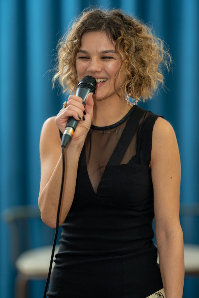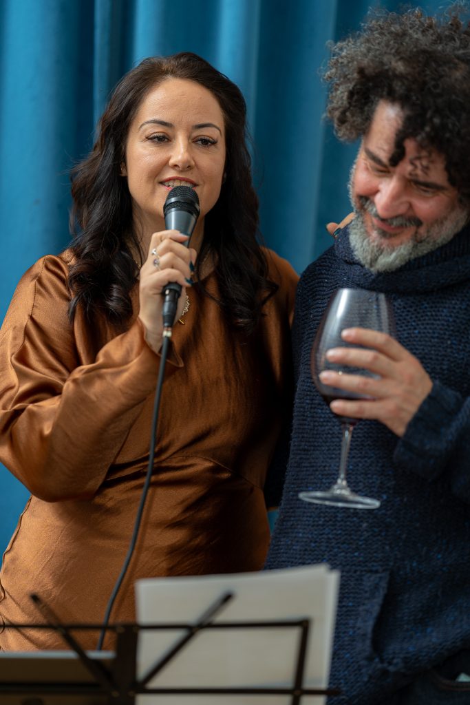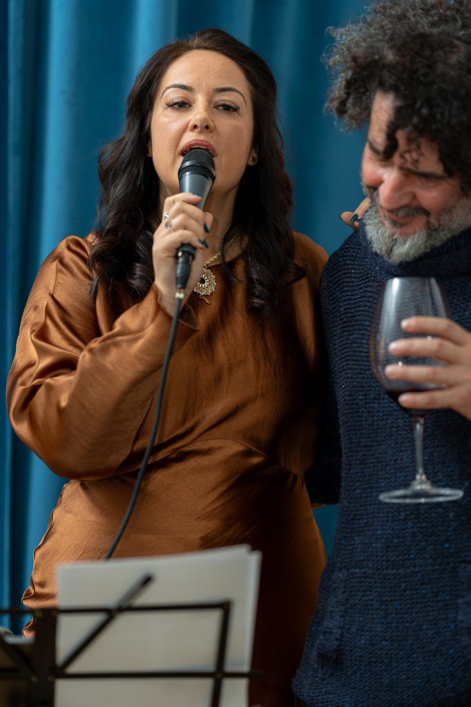 Pe parcursul serii, Maria Roxana Șerban, acompaniată de Cristian Dascălu la chitară, ne-a oferit o seară cu note muzicale emoționante. Cei doi au încântat publicul cu voci pline de pasiune și acorduri de chitară, creând un final perfect pentru un eveniment memorabil la Books and Wine 2023.