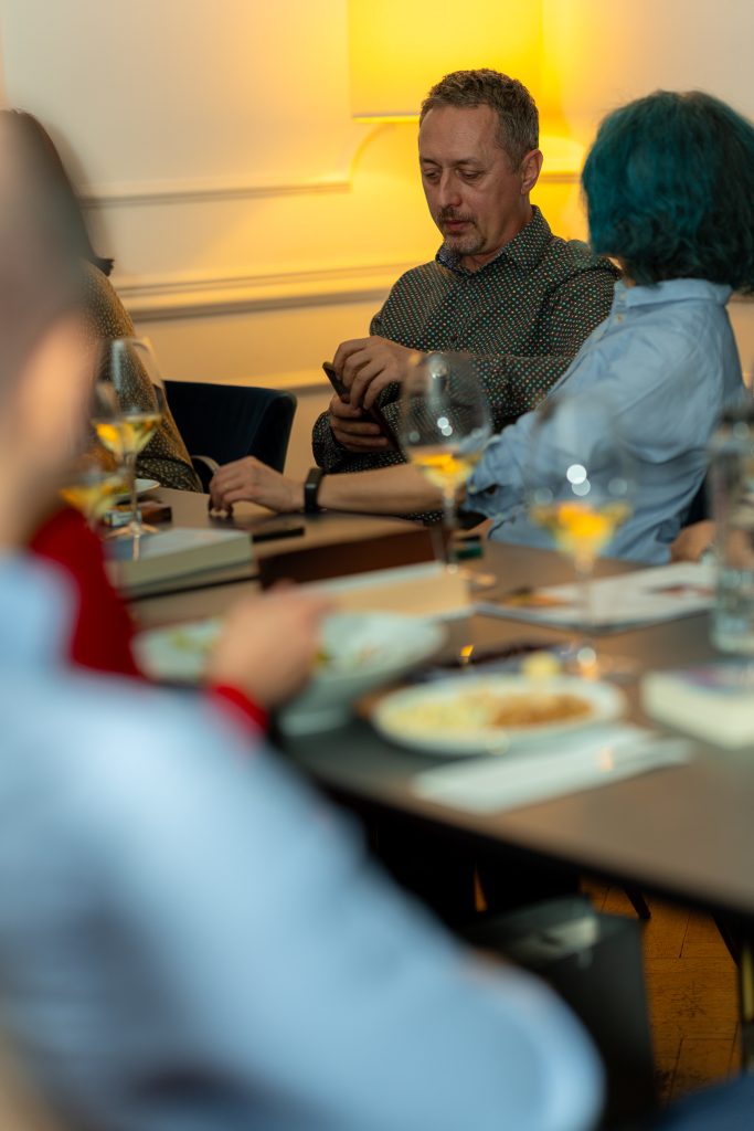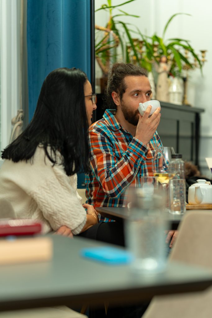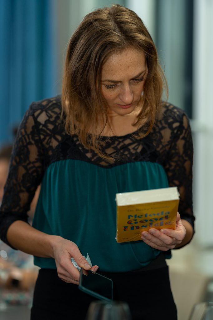 Seara s-a încehiat cu Secret Santa pentru fiecare dintre participanți, aceștia citind din cărțile care le-au picat. Vinul a fost oferit de Vinuri Shop, iar de pe masă nu au lipsit pralinele fine de la Heidi Chocolate.