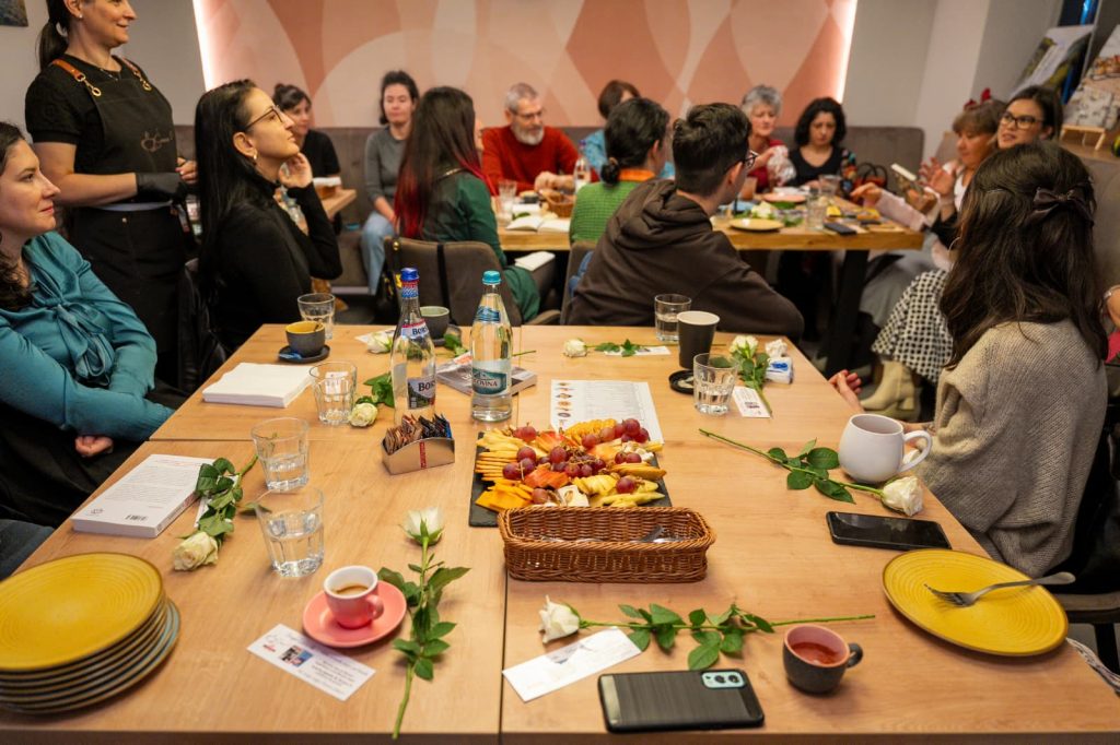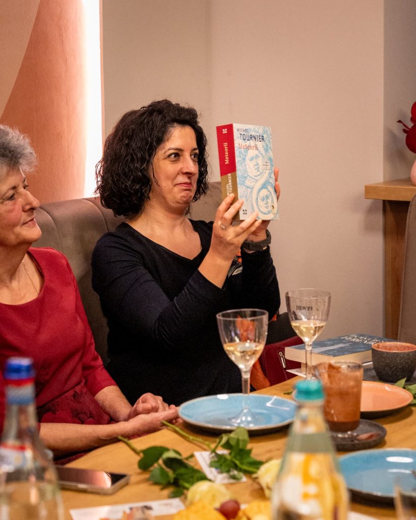 Clubul a ţinut 2 ore, dar pare că am trăit mai mult de atât. Am fost aşteptaţi de gazda noastră de la Scara 0 cu semne de carte şi flori, iar cafeaua şi gustările au menţinut apetitul pentru a parcuge romanul în interior şi exterior deopotrivă. Un fericit cititor a câştigat o carte cadou la tradiţionala tombolă iCarte, iParte. Iar surpriza serii a fost un exemplar ,,Lizoanca la 11 ani” oferit chiar de autoare unui participant la alegere.