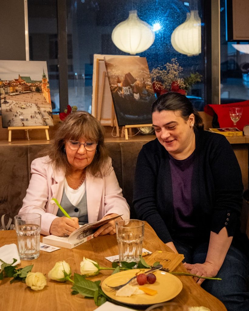 Doina Ruşti ne-a purtat în culisele cărţii, dar şi în ţările în care povestea a fost tradusă (germană, spaniolă, maghiară, italiană, şârbă, macedoneană şi engleză), apreciată (Premiul Academiei Române) şi păstrată la loc de onoare (Blioteca din Berlin). Autograful de pe cărţile celor prezenţi la club rămân dovada acestei călătorii de neuiat.
